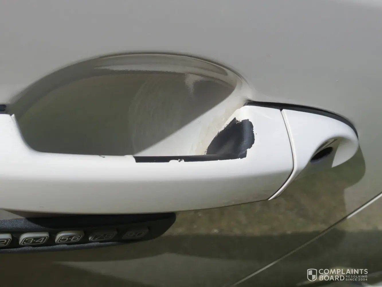 August 2010 we bought a new 2010 Mercury Mariner, and within a couple years the paint started flaking off our door handle, it is now about void of paint on the back of the handle...the color of my vehicle is White Suede...I would like a bottle of replacement paint sent to me to repair. All of the other door handles are starting to flake off also...My Mariner still looks great EXCEPT for the door handles...