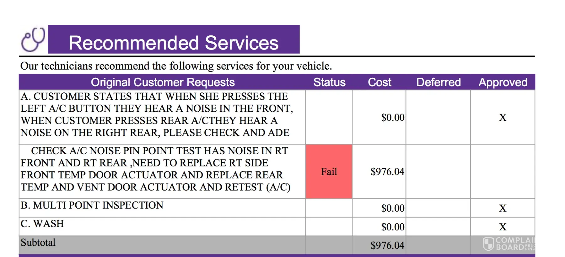 I found it very interesting that within 4 days that my AC went from perfect working order to $1000 repairs needed and I asked the service person about it. They said they would knock off the $51 spent on Monday. They said that sometimes that just what happens. I disagreed and picked up my truck later that day.