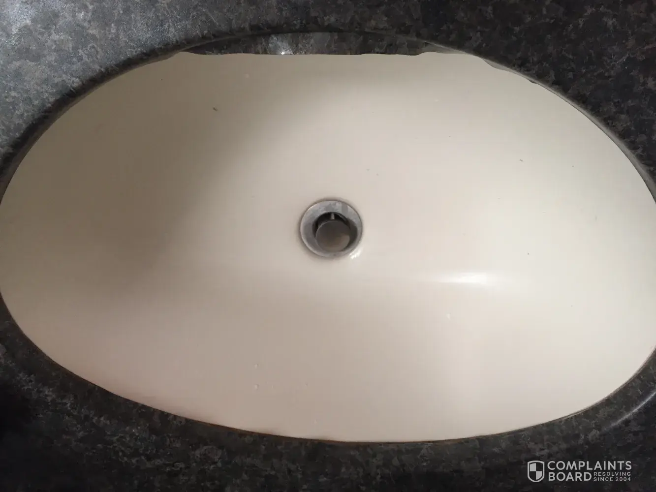 Vanity sink in bathroom laminate cut too short around sink completly lifted looks awfull reported to forest river in June was told that was a problem been trying to get replaced since June 2016 now Feb. talked to the diesel division they don't seem to be able to order parts (new vanity top)