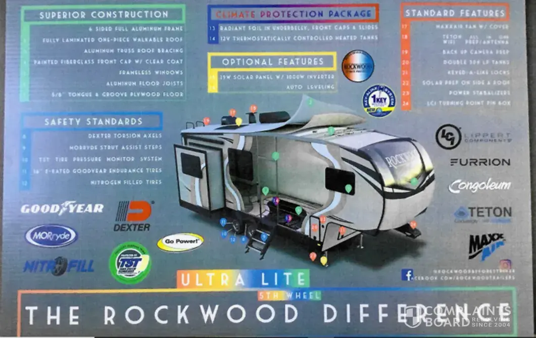 Purchased new 2021 Forest River Rockwood 2882s 5th wheel coach. Retailer Wholesalers Ohio. Picked up April 2021. After a couple of months use many issues noticed.15+-items listed on W.O. when Parkway RV Castaic, CA agreed to take in for Factory Warranty Work pending approval. Factory Lied to Parkway saying that RVWholesalers had done unauthorized electrical work on the coach. This is the reason remote switch at control center inside coach did not work to turn off and on the Inverter that we ordered in the Factory Option List.("190WattSolar/Inverter") option That we paid for thru the Purchase agent retailer. After Proving that Lies & Misinformation Forest River spreading the 2nd Service Mgr.(1st one left. Wouldn't sell out integrity)has started Lieng also. He Will not give me pricing on work to correct Solar/inverter problem.