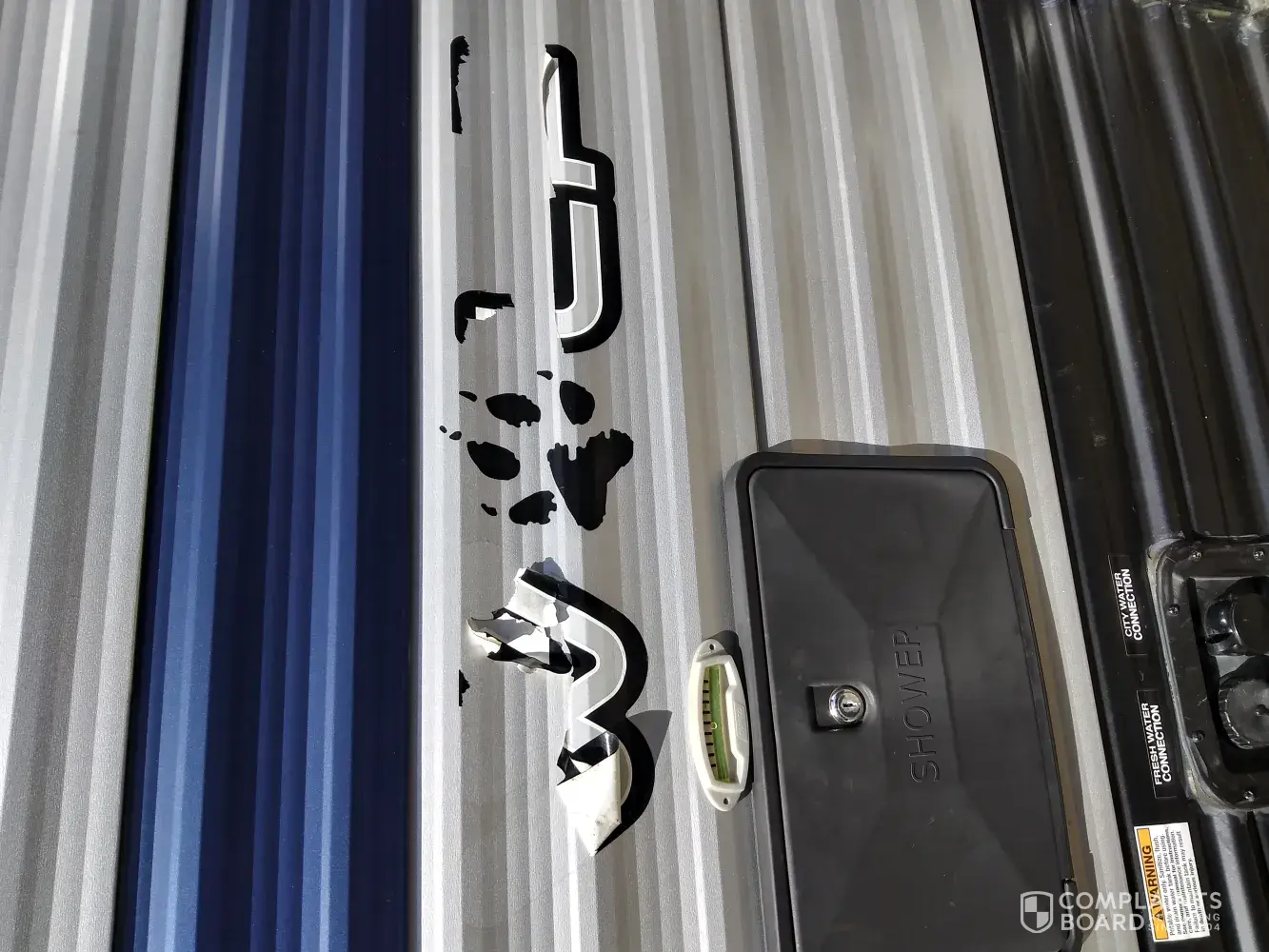 2019 grey wolf has awful logo design graphics that are coming off our entire travel trailer. Only 2 yrs old and this is ridiculously bad.