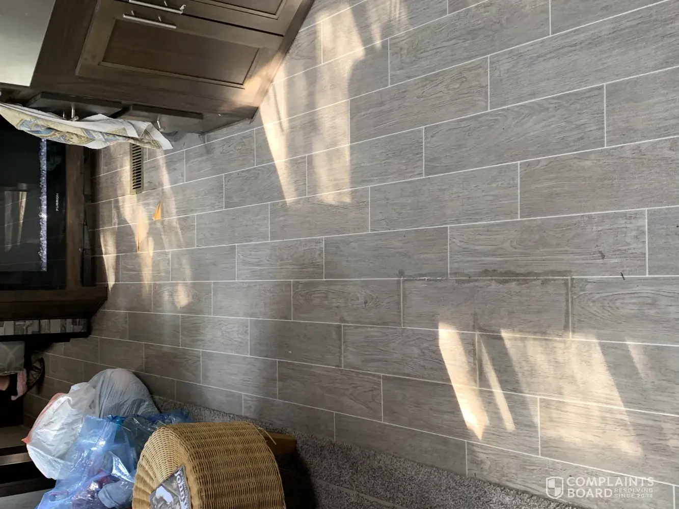 In July 2020 it was returned for a large gouge in the floor caused by the slide out. It was returned again for another gouge in the floor in February 2021. While making repairs, the dealership caused stains in another part of the floor. Each time it was returned to the dealership they patched the floor. Glue seeped around the patches and is visible on the surface of the floor.