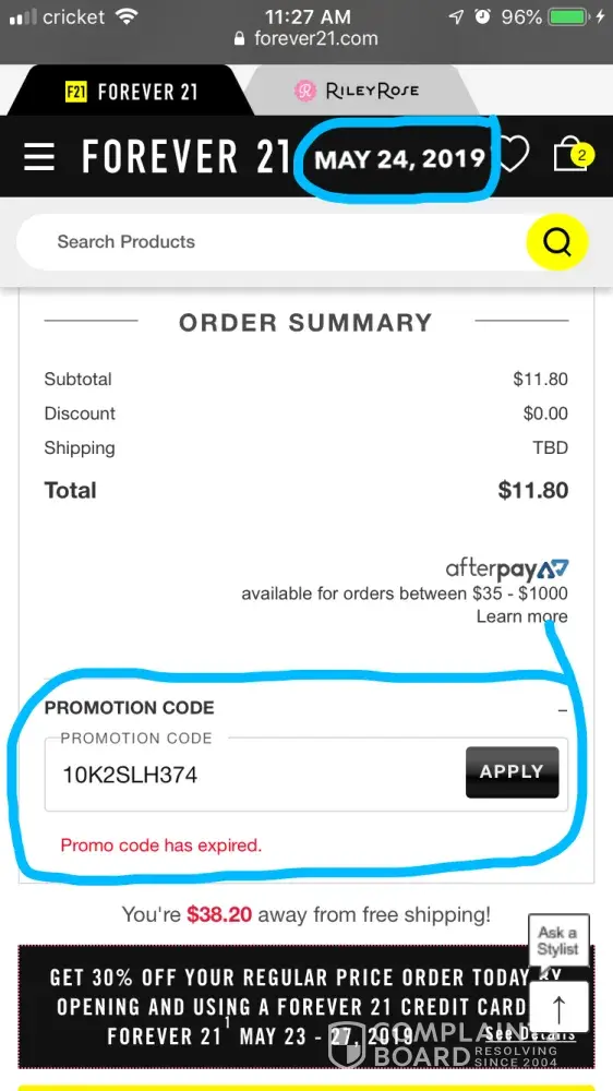 I signed up with forever 21 May 23, 2019 with the email shariah.[protected]@gmail.com, and they sent me a code to use for a 10% discount, which expired in 7 days, the same night I signed up. I tried to use the code the day I got the email with the 10% discount code, but when I put in the code in said it was already expired. There's no reason it should already be expired when I just got the code!