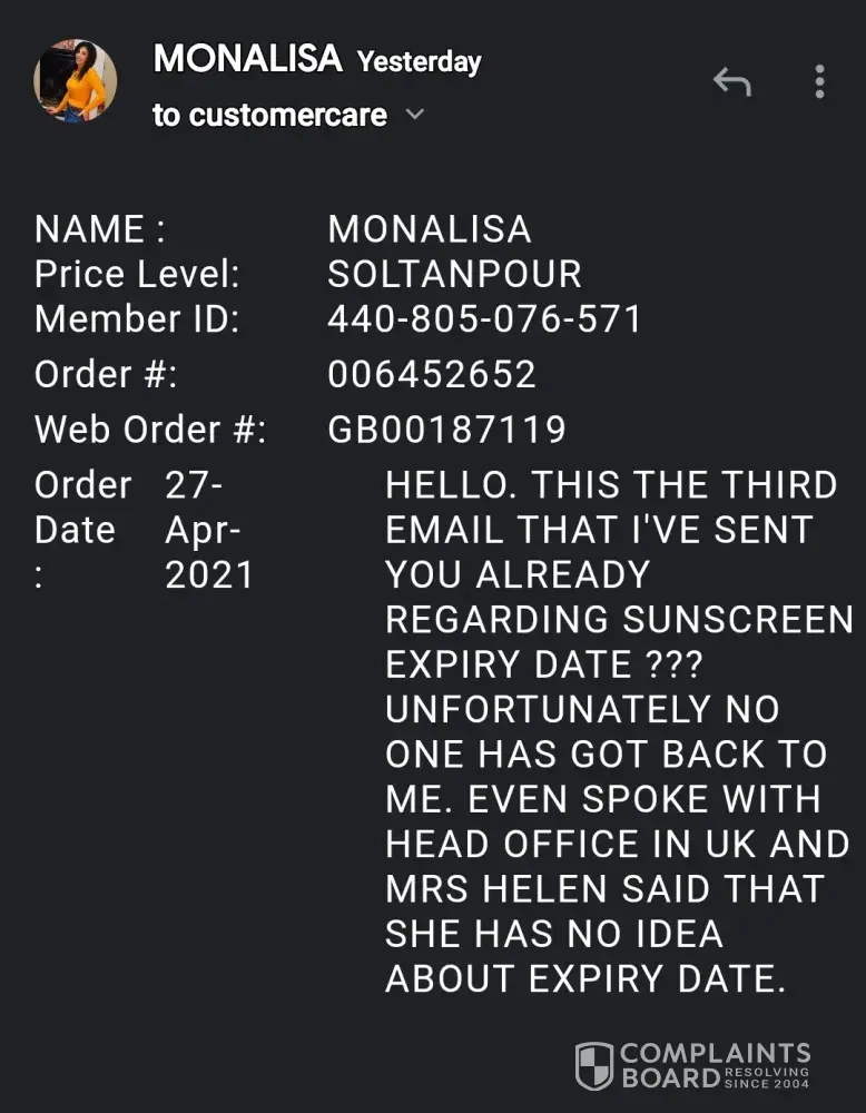 I ordered 3 suncreen on 27 April, unfortunately as I known your company is trusted, and belived on quality. But realised the suncreen expiry date is only 3 months. I've tried to solve the issue with Uk head office, but they didnt accept replacement.