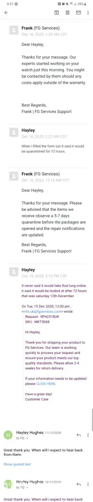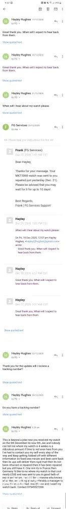 this watch broke down 26/04/2022 sent for repair after countless inquiries