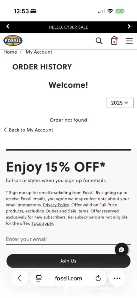 “Thank you for shopping at Fossil.com