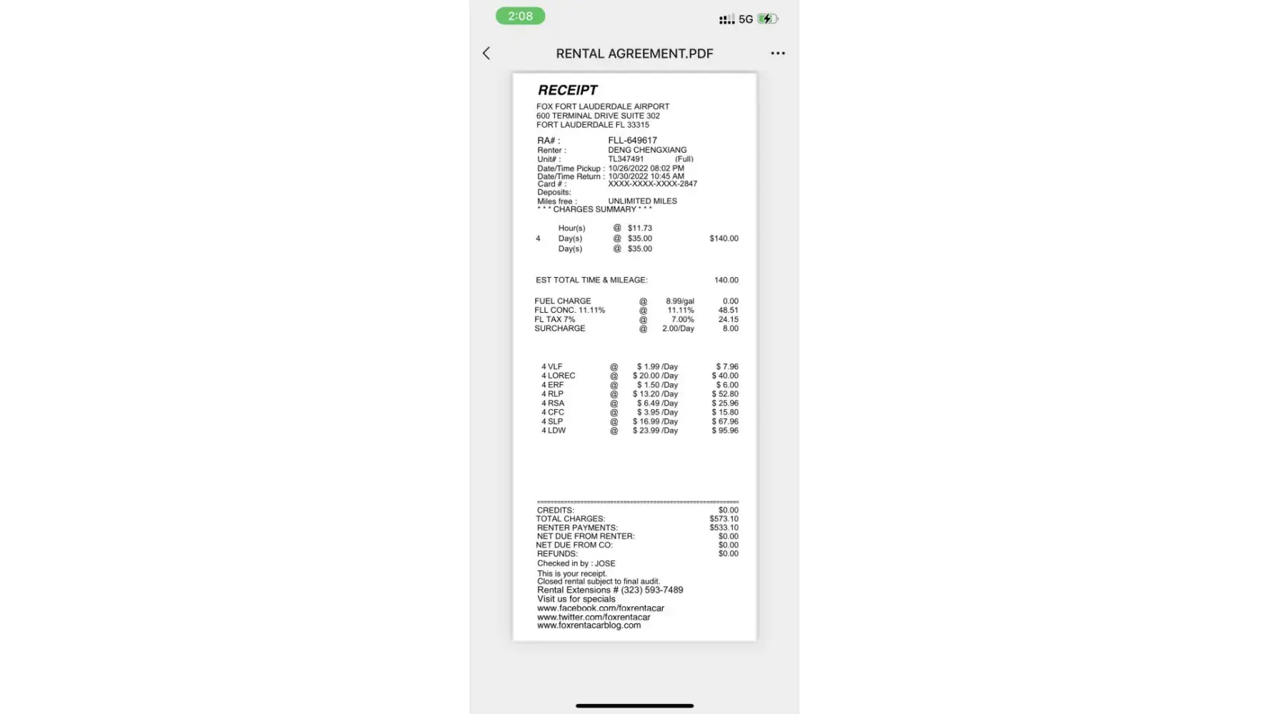 I contacted fox rental and wisecars but they didn't solve the problem. One plays for the other and to this day there has been no solution or explanation.