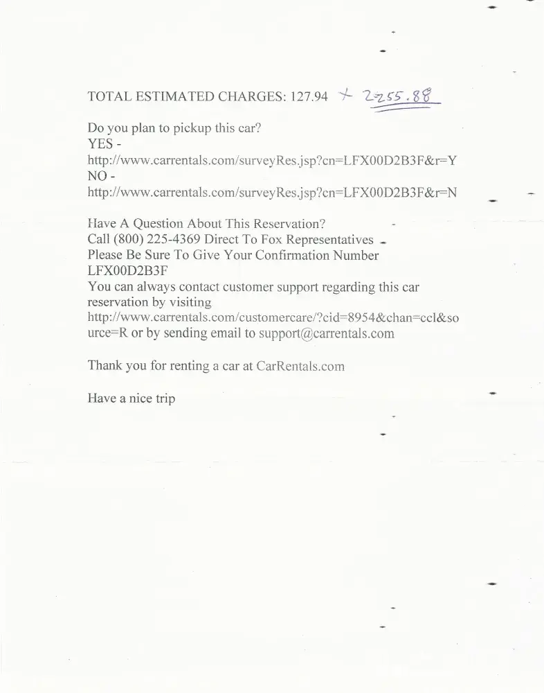 Fox Car Rental is a scam company and should be out of business. Do not rent a car from them.