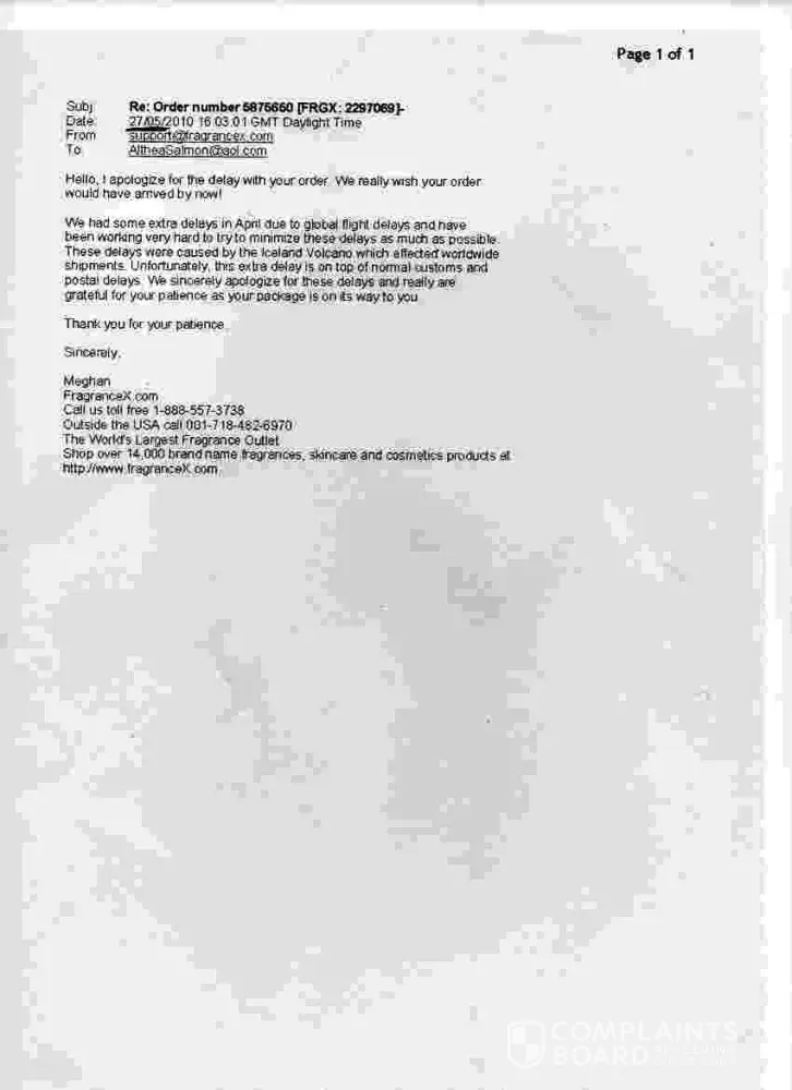 FRAGRANCE.X has failed to deliver goods, despite numerous attempts at chasing them. When I emailed a query, they first said that the product had been despatched. When I sent a second, more stern email, they claimed that they had a backlog of orders because of the Iceland Volcano problems which had affected flights. They claimed that the goods would be despatched and it still has not arrived. I am now endeavouring to get a refund so I hope the organisation isn't a total scam and just incompetent. But I'm not optimistic!