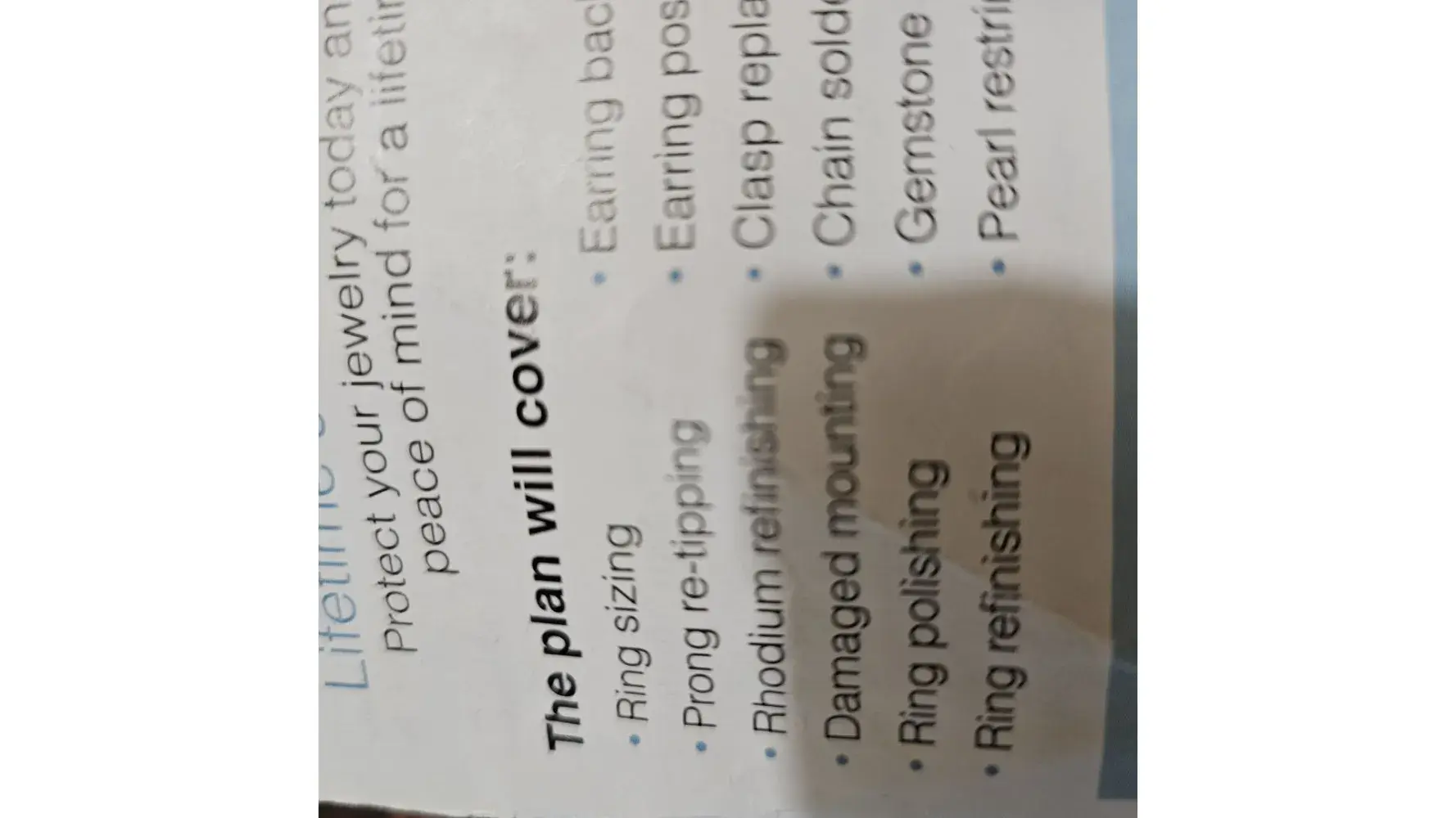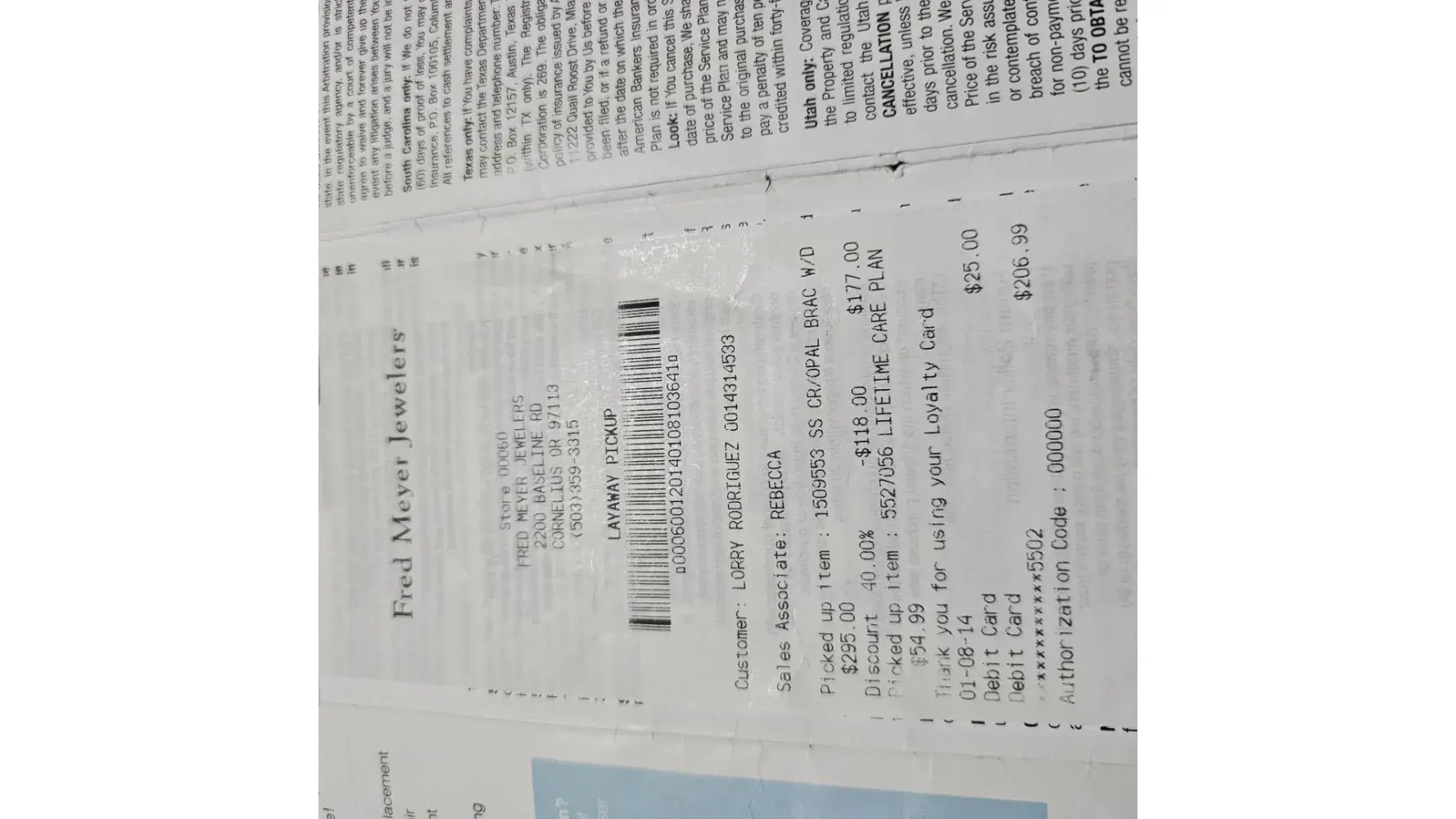 I took a I took a piece of jewelry to the Fred Meyer in Hillsboro to get rhodium finished and I received a phone call telling me that they couldn't finish it because it would cost $400 but it's in my care plan it's covered it says rhodium finish is one of the things that are in the care plan that cover the piece of jewelry it's covered and I've had it done before and she refused acknowledge that I had a lifetime care plan