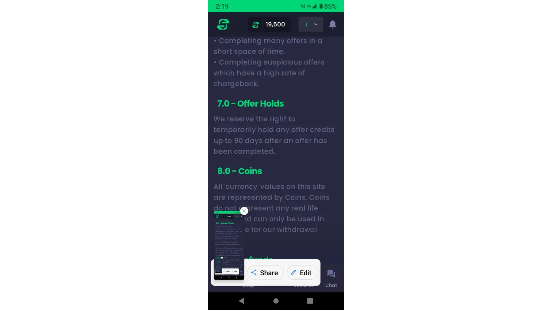 I was referred by a friend and signed up and began using the site. I completed 3 surveys and most of one offer and had my account frozen. They said it was because of charge backs meaning I completed the surveys incorrectly or too fast or a list of other possible reasons they never pinned down for me. So I complained to support using very harsh language and was banned. I was able to get one message through when a prompt to rate the service I had received allowed me to type as they blocked me from contacting support. I was then unbanned and allowed to continue using the site but a day later was frozen again and blocked from withdrawal due to suspicion of duplicate accounts or using vpns or another number of unspecified reasons until I verified my ID. The terms of service does not state anything about needing a state issue ID to sign up or use the site. The verification they require is email and phone number which I did. They will not allow me to withdraw earned coins, chat, or continue to use the site. My account is only 7 day old 5 of those days were frozen or banned and I am being accused of violation of terms, essentially saying I have been cheating or being someway deceitful in how I earned the coins and now I am under scrutiny and asked to provide information that is not needed nor stated in the terms. I do not cheat. I do not scam. I do not lie. I do not appreciate being accused it and I damn sure don't like people being funny with my money. Especially when earned honestly and per the guidelines. I do not care to use the site any longer I just would like either proof of my misconduct, or the ability to withdraw what I have earned so I can delete my account.