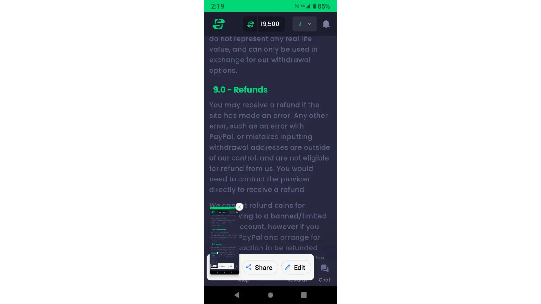 Desired outcome: I would like to be able to withdraw my earned coins.