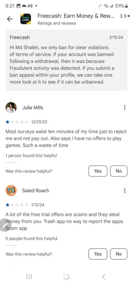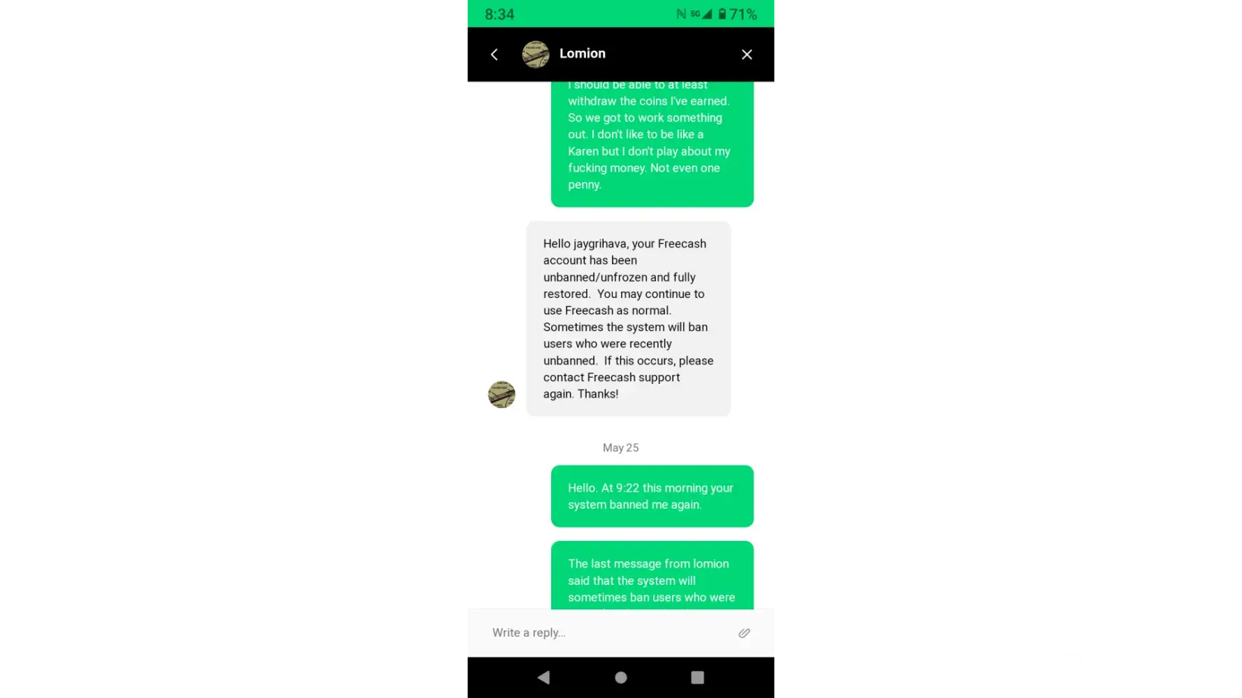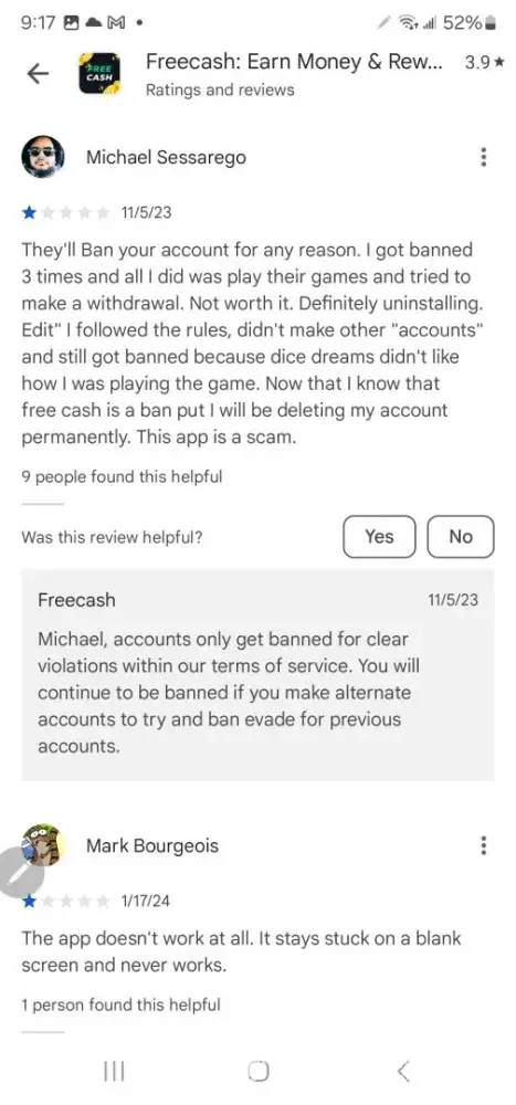 Free Cash My account banned without giving me a chance to prove otherwise