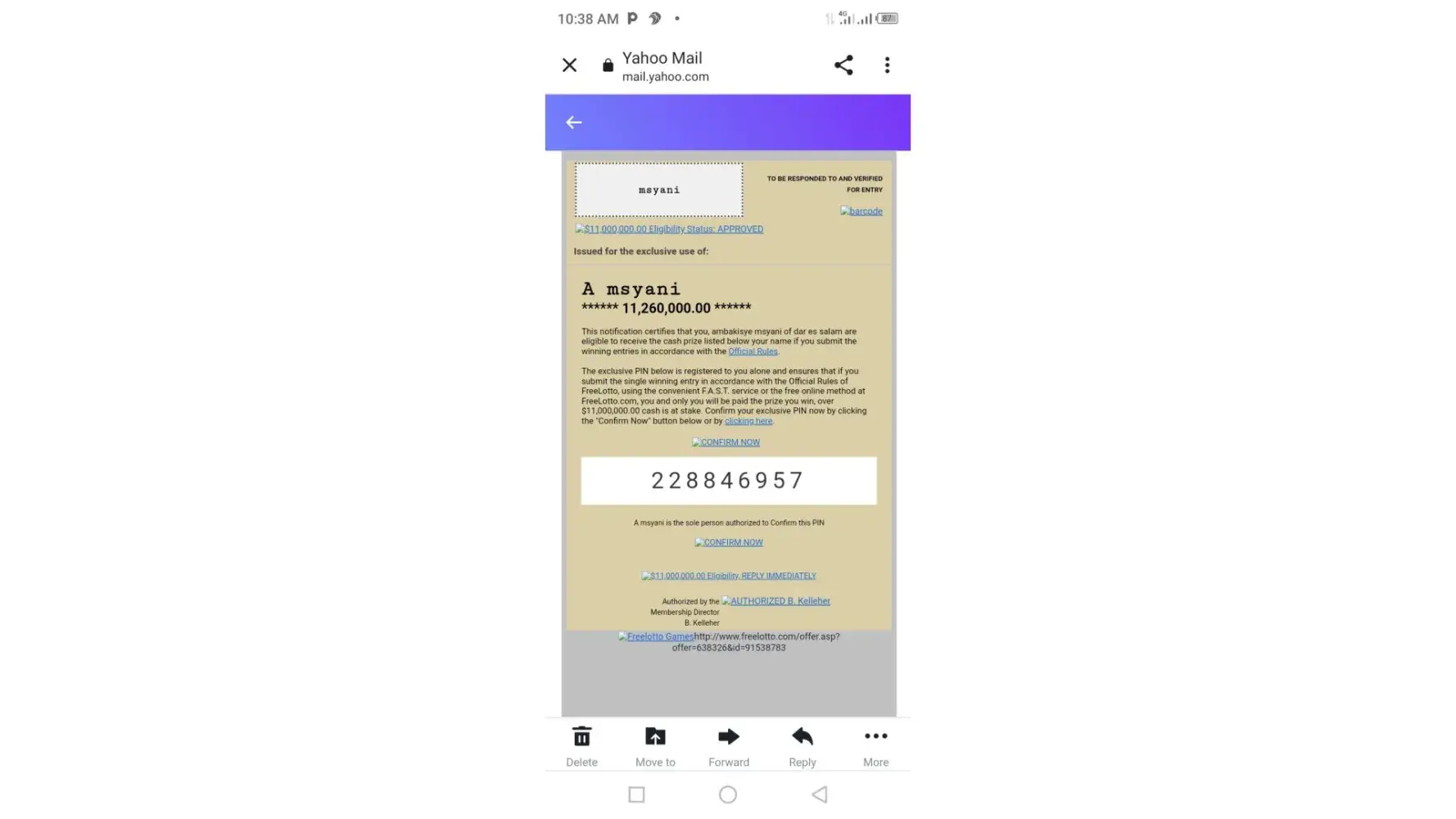 $11,000,000.00 Eligibility, REPLY IMMEDIATELY