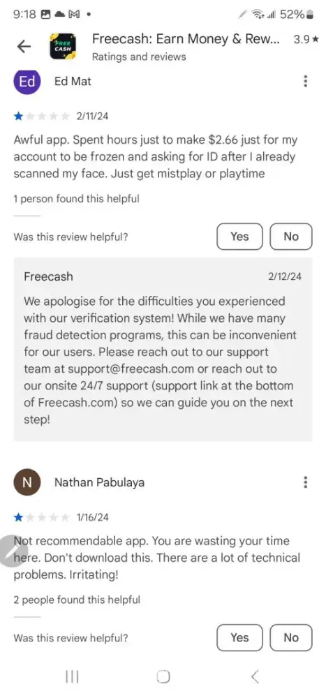 I completed an offer that I was never paid for and posted a negative review on trust pilot. I still completed another offer and it was supposed to post today. Instead I got an email from trust pilot saying that freecash wanted the review removed for being fake. So I verified it my sending multiple screenshots of proof. Shortly after freecash froze my account. I had to verify my ID which I did but they have not removed the freeze nor has customer service responded to my attempts of communication. My ID, email, phone number, and my PayPal are all verified.