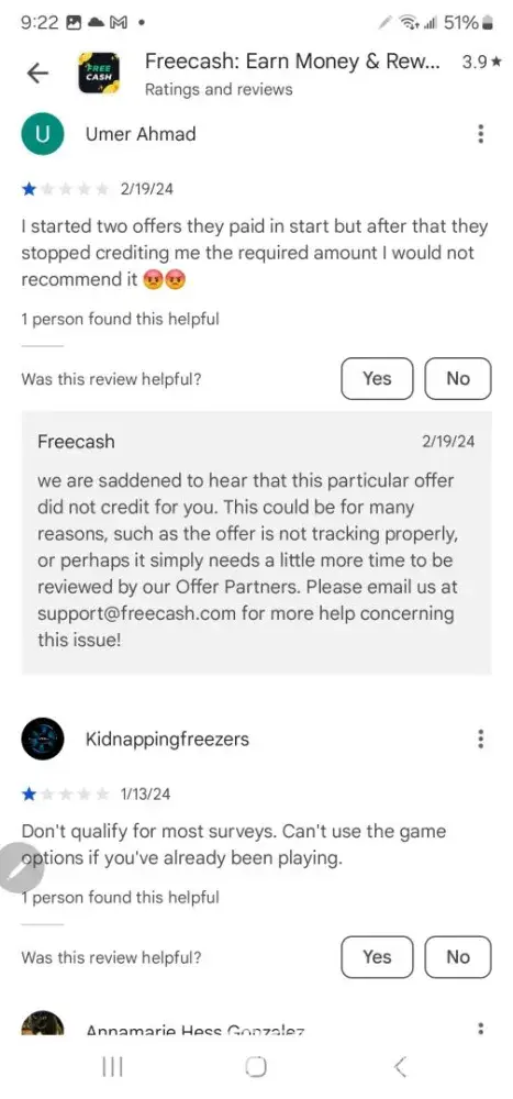 FreeCash.com's customer support team is commendable. Whenever I had questions or encountered any issues, they were quick to respond and provided comprehensive solutions. Their attentiveness to users' needs sets them apart from other similar platforms.