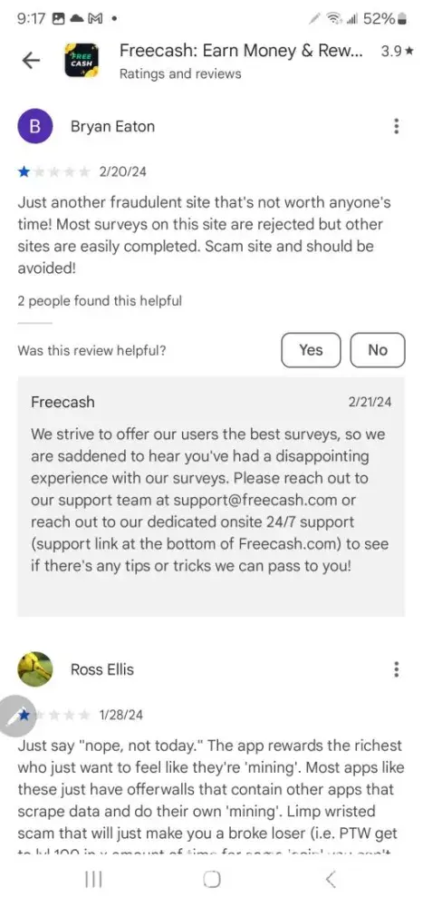 My experience along with thousands of other victims, with FreeCash app and their affiliated game, Dice Dreams, has been nothing short of frustrating and alarming. Like thousands of others, I fell victim to false advertising promising monetary rewards for playing games and completing surveys on the platform.