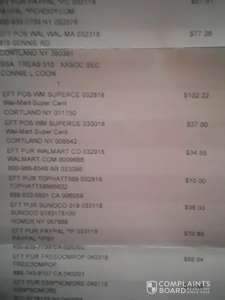 unauthorized charges on my bluebird debit card by freedompop