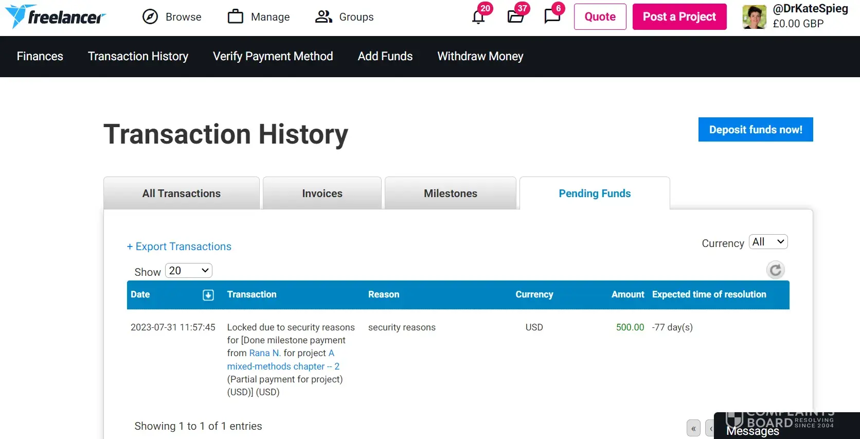 Read full complaintFreelancer.com complaints: history and resolution overview