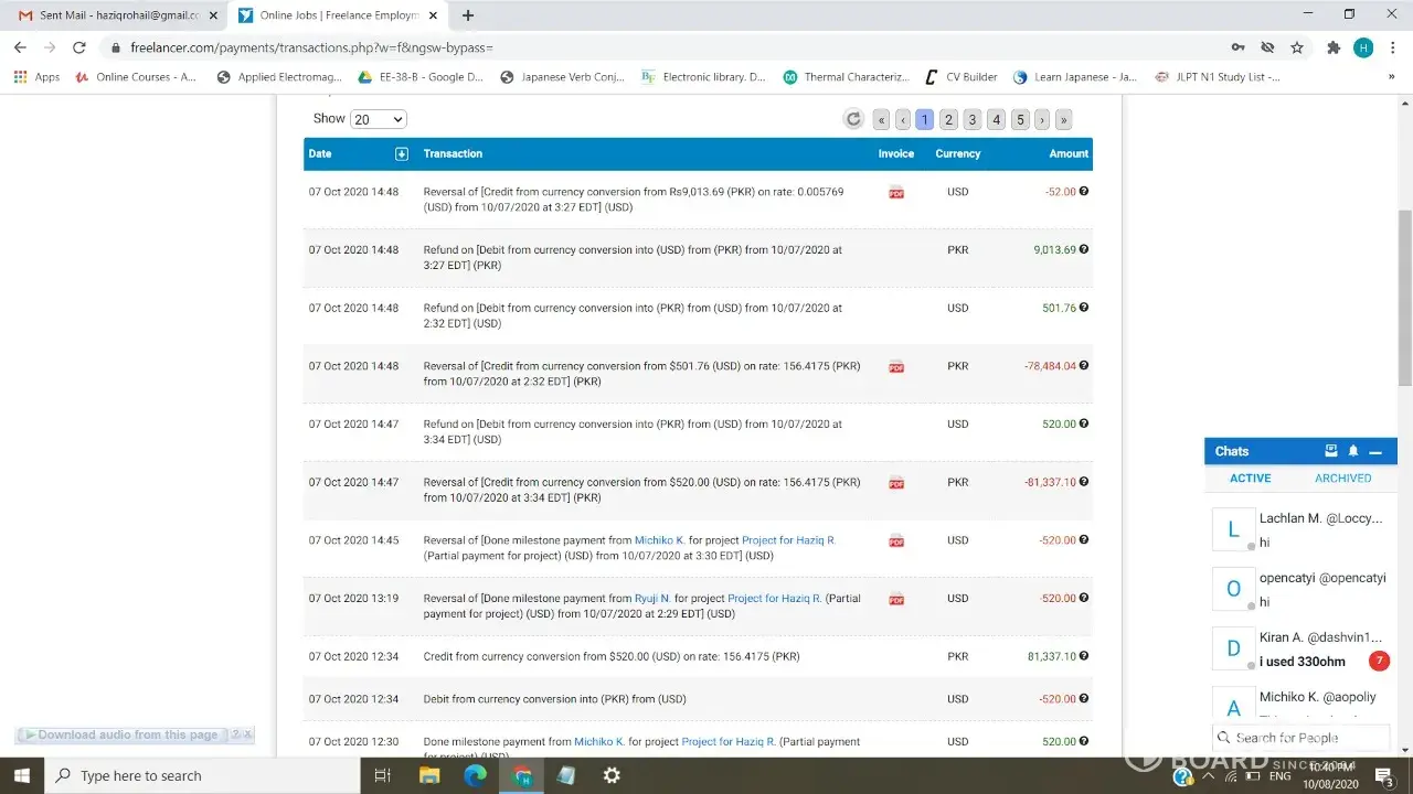 When I finally got access back to my account, my money was gone. Two milestone payments worth 520 USD each had been reversed from my account. So I lost 1040 USD.