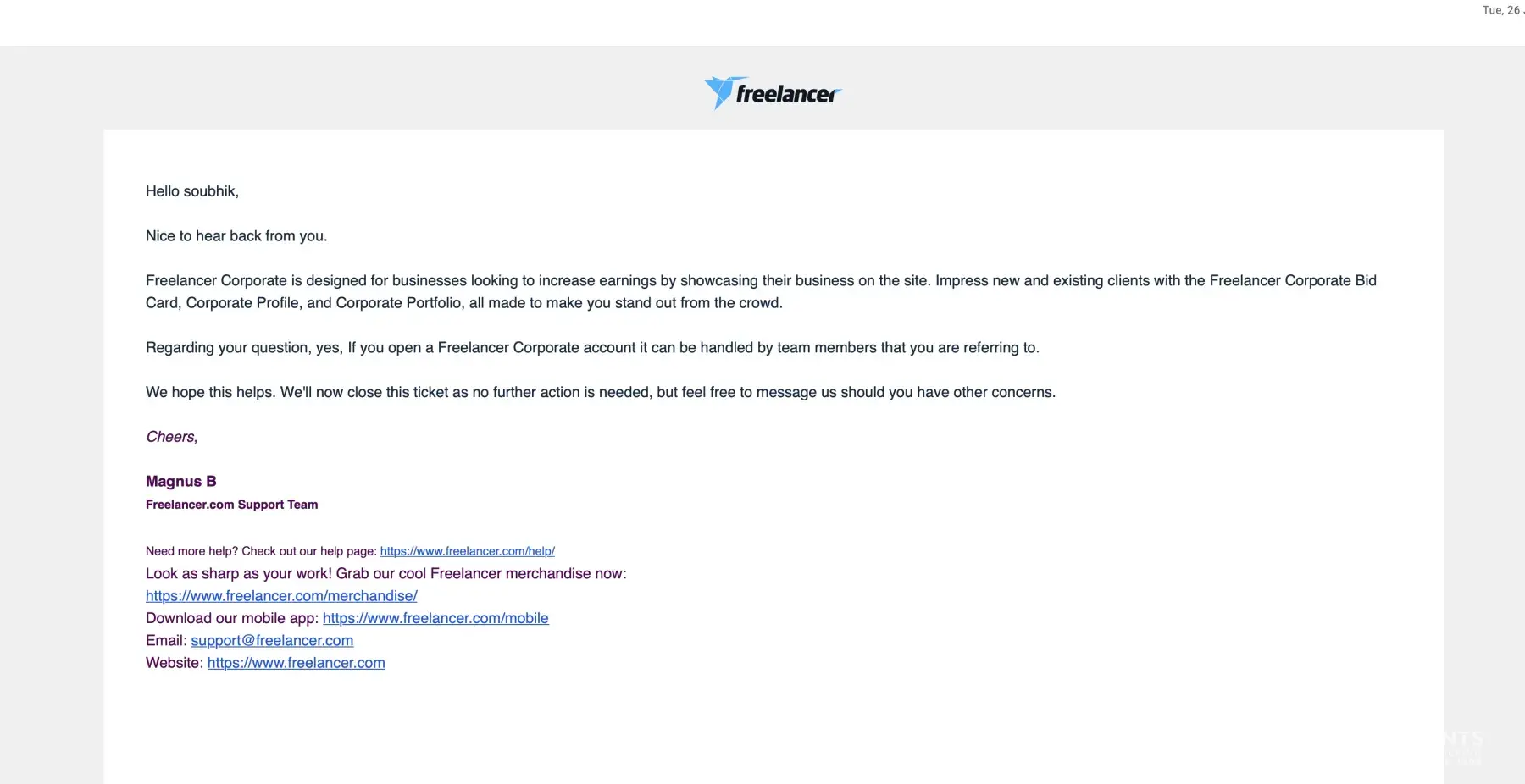 I didn't get any email from you or Freelancer.com