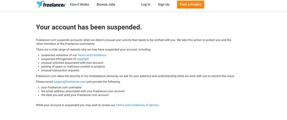 Freelancer account suspended