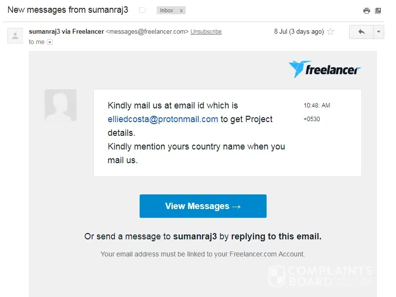 same thing happened to me in freelancer. they are now using these email addresses: elliedcosta@protonmail.com, arizonarobbins58@gmail.com, luciasylvesterr@outlook.com. posting here so that others in the future can search these email addresses and know the scam.