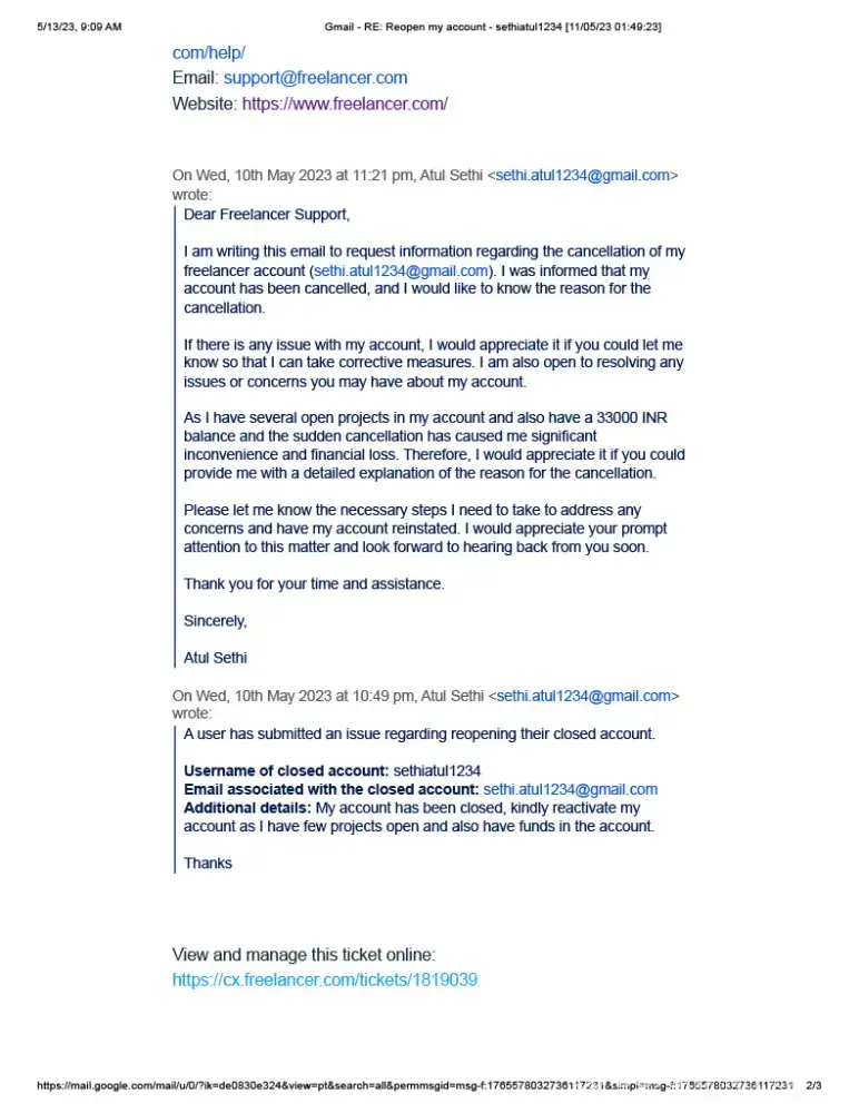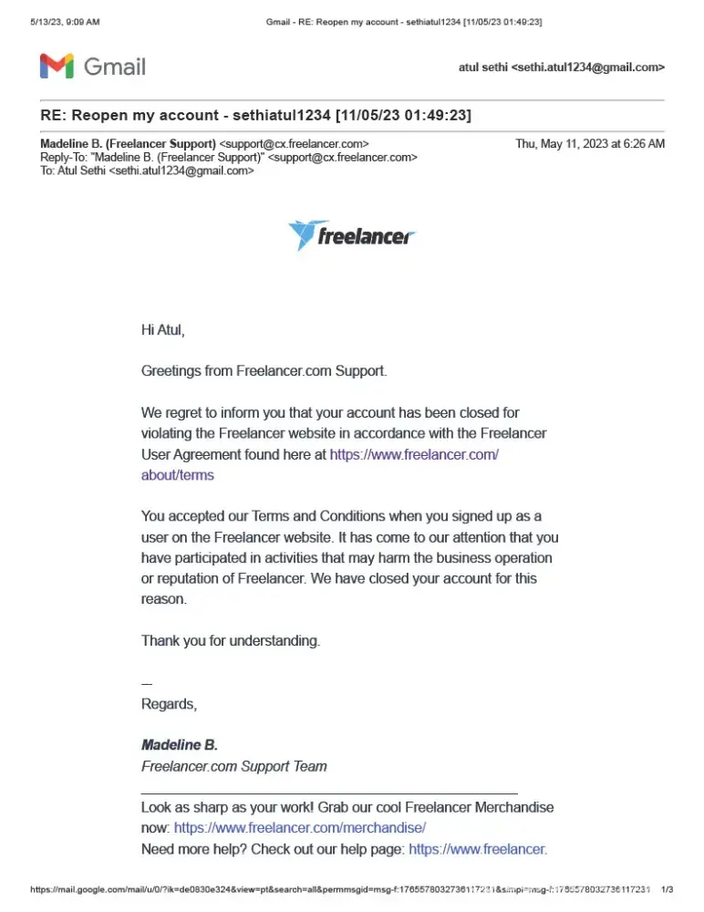 I am Babita Khatri, This complaint is about the poor customer support service of freelancer.com. They closed my freelancer.com account which I built after 6 years of hard work
