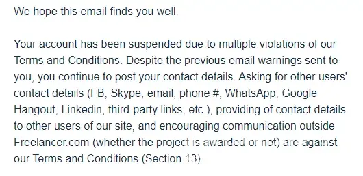 I got my account banned, even though I didn't do anything at all. I mean, I created an account about 5-6 years ago, I don't remember exactly. I was still a beginner in my field at that time, so I tried to participate in contests a couple of times, and then I abandoned my account, and after 5-6 years, or rather now I have gained experience, and I wanted to get busy with freelance orders, but in order to start, I had to verify my account, I sent a passport, the document from the bank, and I started waiting, but instead of verification, my account was banned. I was written from support that, It has come to our attention that you have participated in activities that may harm the business operation or reputation of Freelancer. We have closed your account for this reason. " I read all the rules for using the service and I didn't violate any, besides, I didn't take orders, I didn't have any other accounts, how could I participate in something suspicious when I almost never sat there on this site. the only thing I can assume is that I have visited frelelancer.com a couple of times from the free VPN service. and the ip received from the vpn could appear somewhere, but these are just assumptions. how can I resolve this situation if I really didn't do anything wrong and didn't break a single rule. in general, I put - 10/10 for service, support, and the desire to help sort out this situation. I do not recommend this site to anyone for freelancing