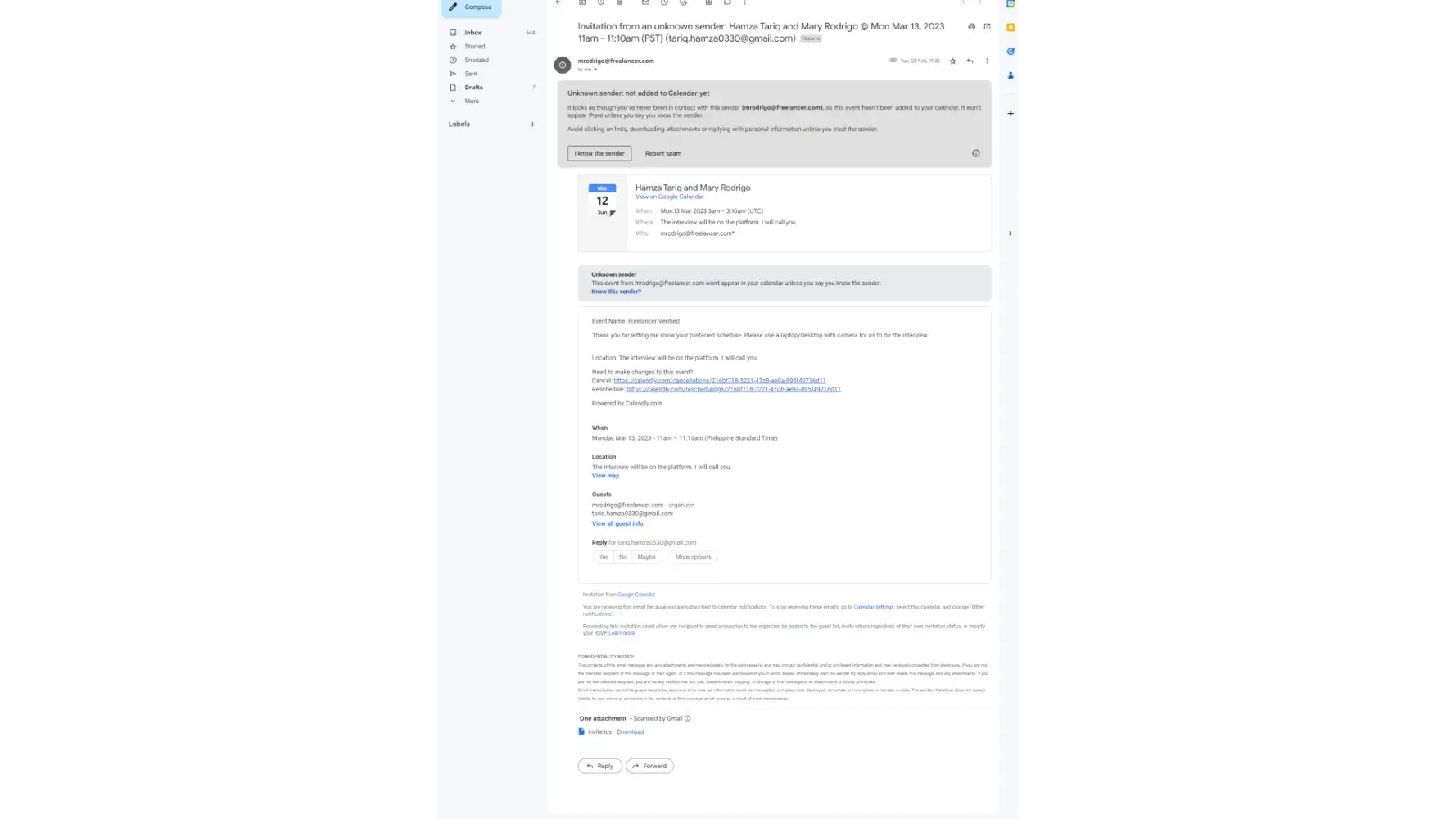 There are messages from Freelancer.com