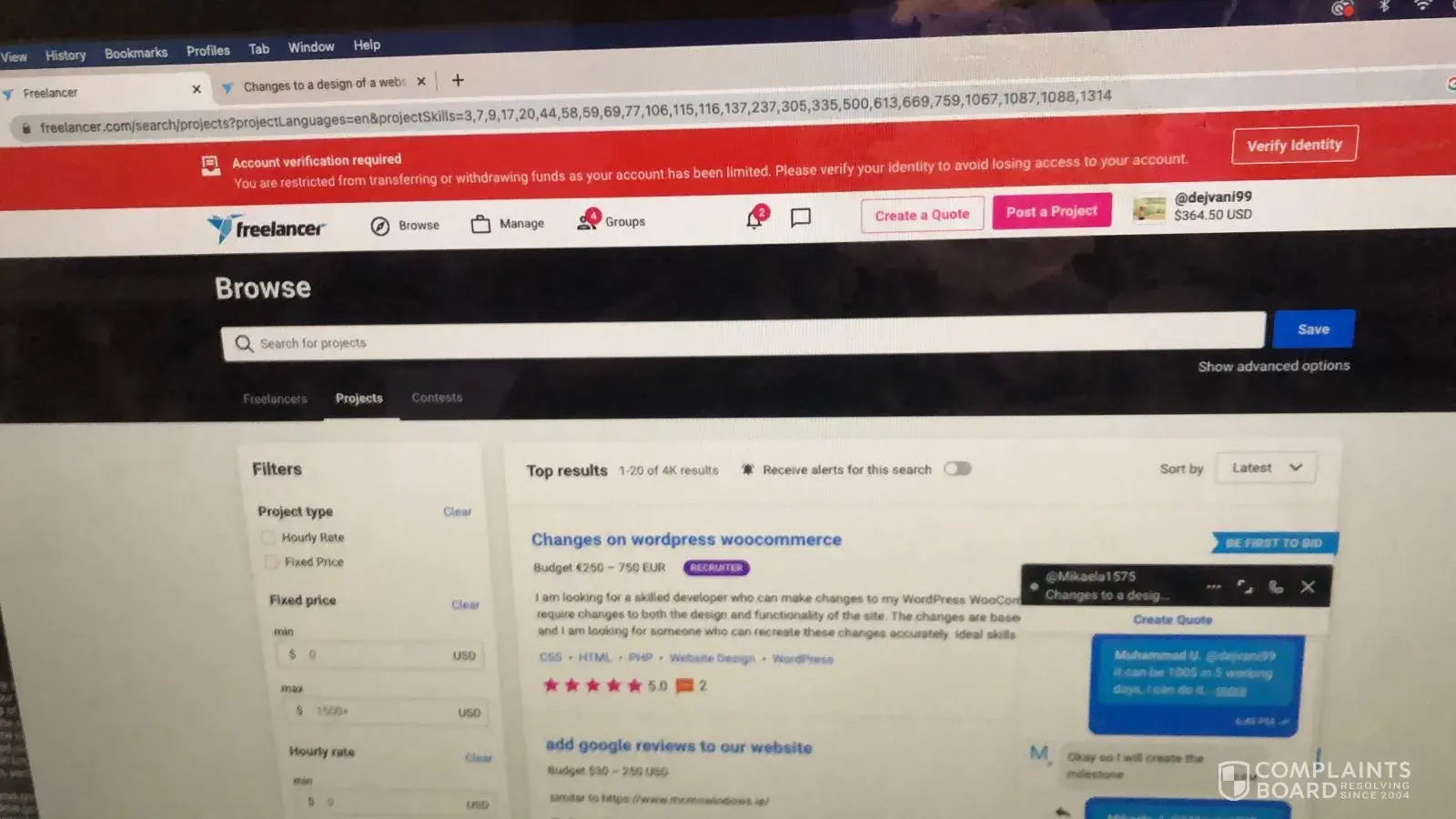 As much I have concern like other freelancers, mainly from pakistan we do work for 16 hours a day to design, develop and execute our projects for our clients. I condemnly complaining as I have seen other freelancers are also facing the same issue, one of my collegue from office got stealed her money from freelancer.com and this did it from the freelancer management she complaint again and again and she provided the all the verification more than 10 time it got accepted and then rejected after several days. more than 600 dollars were in her account and the account became blocked. even I was helping her to complain via email too but freelancer management stealed her account without paying her the money I know she is in very criticle financial condition unfortunately she had zero motivation to work on any plateform just due to freelancer.com she had done more than 20 project and all of them succefully delivered and 19 of them were 5 star rated. nothing was any bluff or illegal thing or anything which can be marked as unconstitutional or illegal.