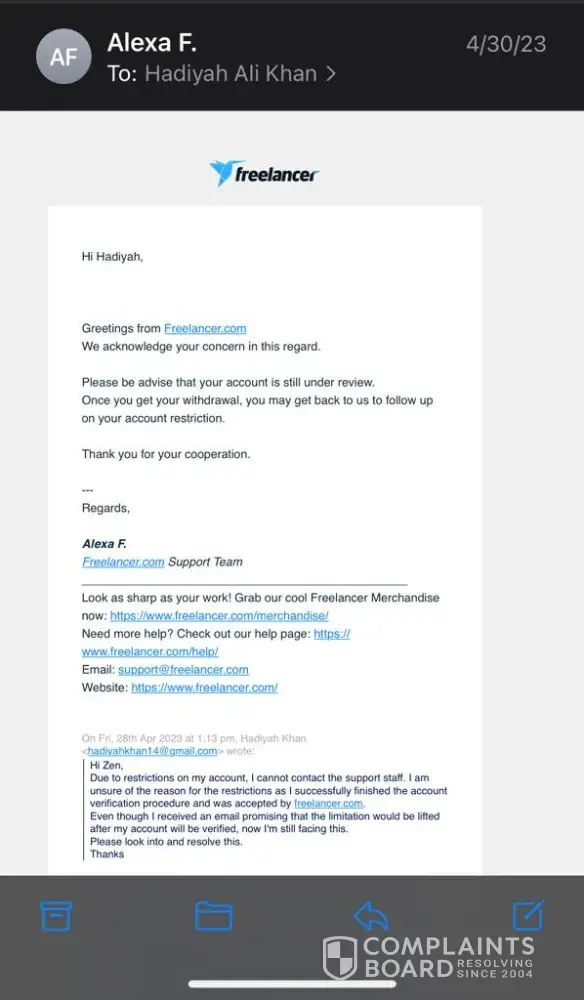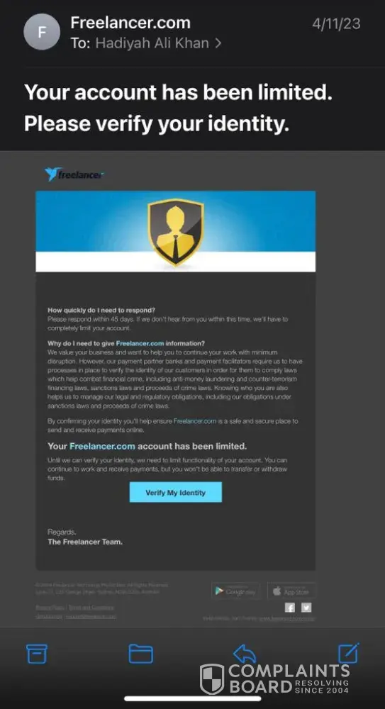 I am writing to file a formal complaint against Freelancer.com regarding the suspension of my account without any prior notification or warning. I was a graphic designer on the platform and had been using it as my primary source of income to pay for my university bills.