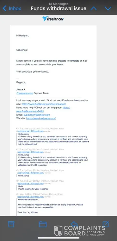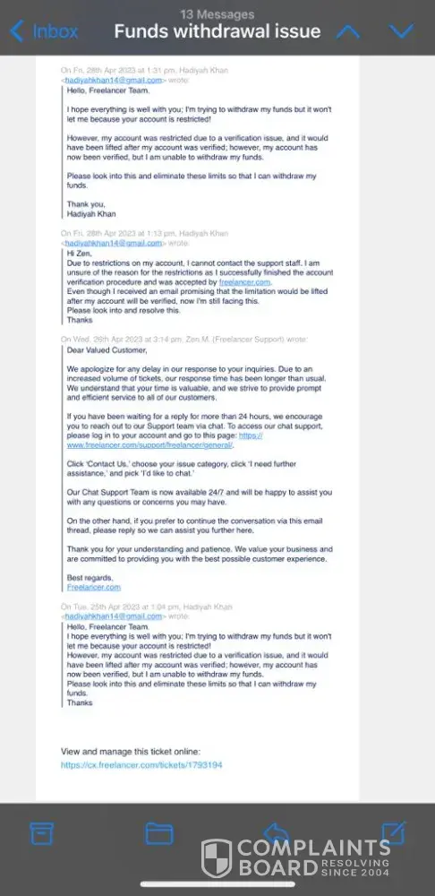 I urge Freelancer.com to take immediate action to resolve this issue and provide a more transparent and responsive customer service experience. If this issue cannot be resolved promptly, I will have no choice but to escalate this matter to legal authorities.