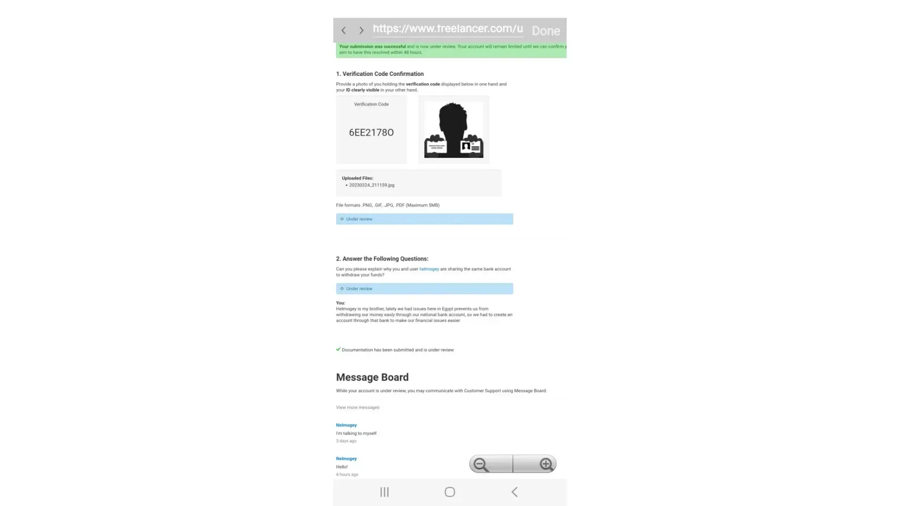 Unfortunatly I have no answer to my last message from freelancer support at all.