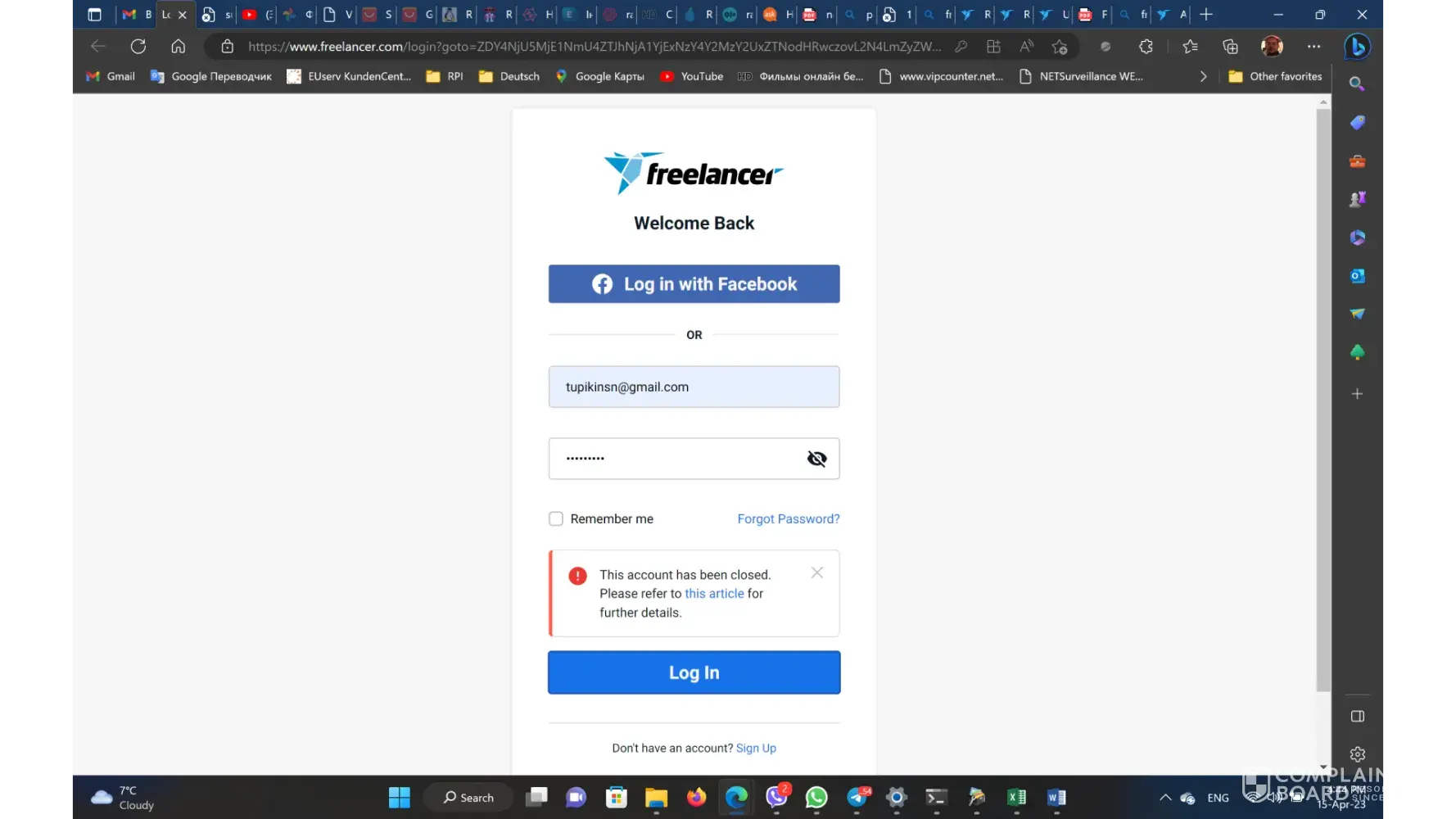 I had Freelancer account since Mar 2018, I had a lot of succefull deals with developers. Since 01/01/2022 I had no activity on my account however I had 300$ balance on my account. I have tried to withdrow my money in the begging of April 2023. I have passed the verivication procidure and send all what they asked. I was waiting for verification about 10 dayes after that I have recived the message that the application to verify my identity has been cancelled as requested. I had tried to login to my account for checking and found out that my account is closed. I had contacted to support team and got the message thet the account was closed. I tried to clerify the reason of account closure.