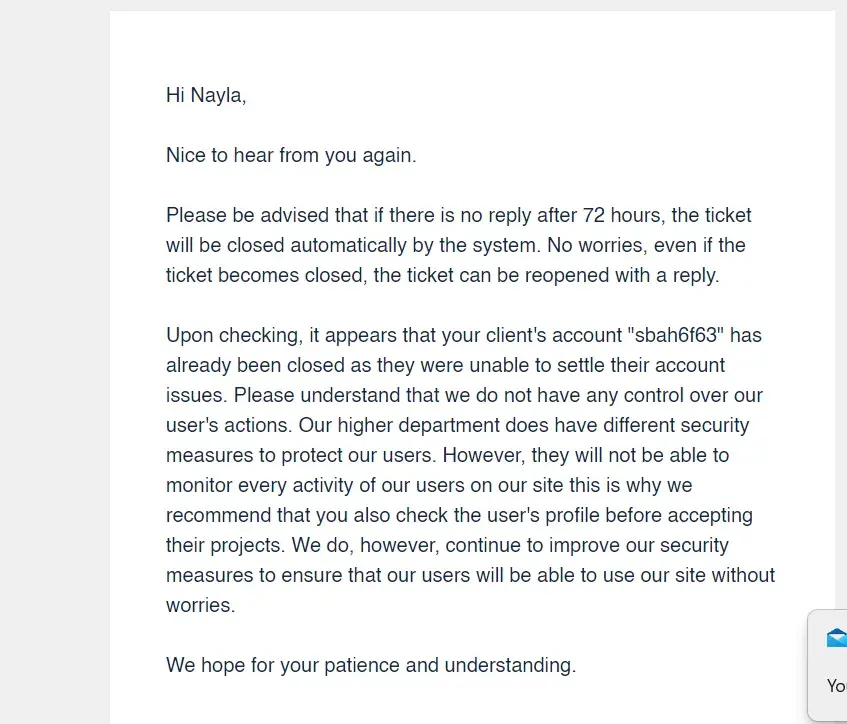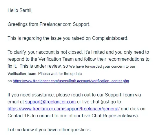 I wanted to tell you my story from last year. They closed my freelancer account without any reason and without any notification. I had a few projects going on there at that time, more than $700 .. This was very painful and gave me a lot of anxiety and panic attacks. I am leaving on rent and I am the only person who is earning. It took me a whole year to recover from anxiety. I have filled in tickets many times, but they always give me the same reply every time.