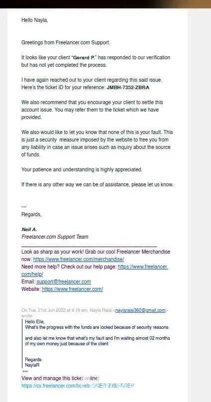 I'm working on Freelancer form 2021 feb but Right now I'm facing a big loss that they stole my 900GBP in Feb 2022 then 800$ in the march and saying that this account is on verification and this issue is from the client side but also I've contact to the client he already verified there Identity but they are not replying me a single mail and stole another 800$ now I've on going milestone on the last stage at which I've delivered the work but The client doesn't release the funds these funds worth of 4500$ and now I'm stuck in between the generic emails that We'll respond you but I'm not getting a single response from last 72 hours