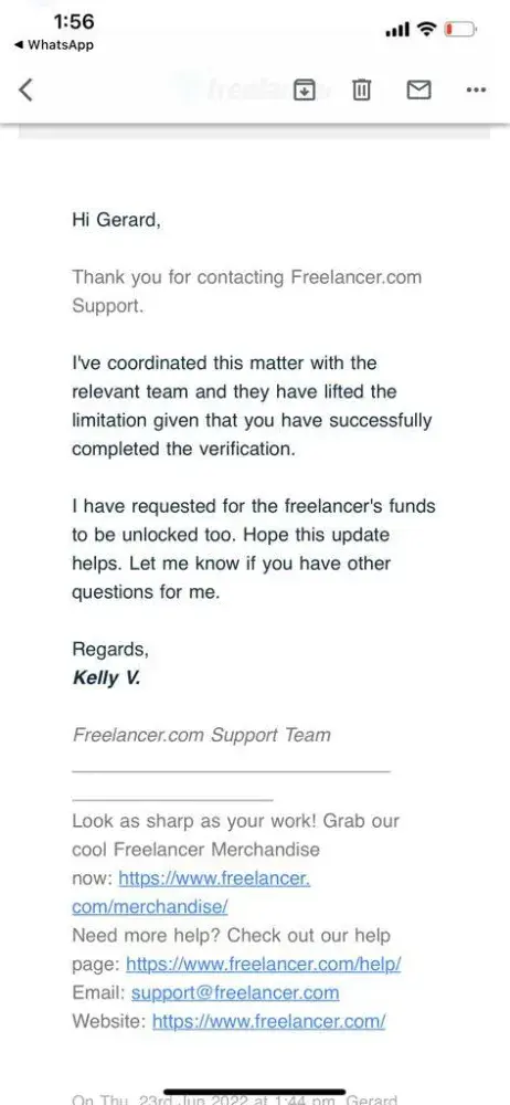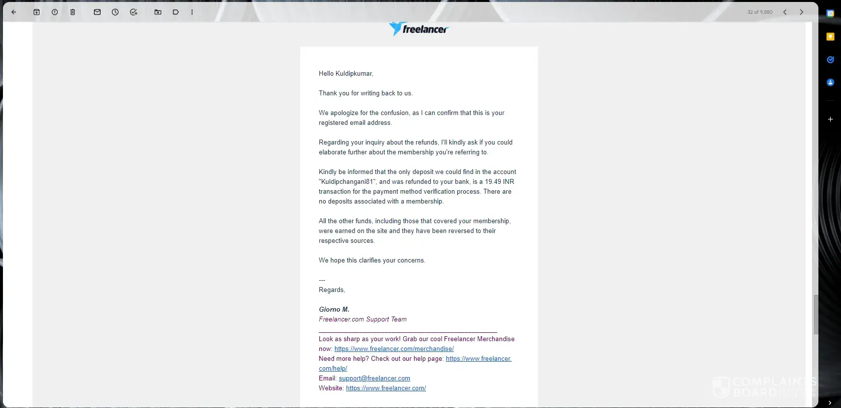 As soon as I sent an email to their support, I did not hear from them until 22 July after I created a dummy account on Freelancer and contacted their support. Their support told me I would receive my membership refund and my account balance within working 7 days.