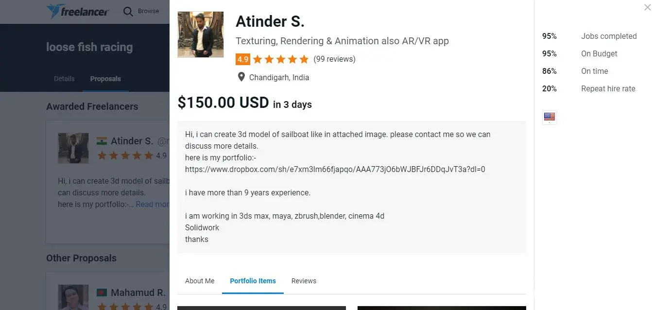 One user sent a chat saying "I can help you" and I replied "I am reviewing other bids and will consider your bid on my analysis".