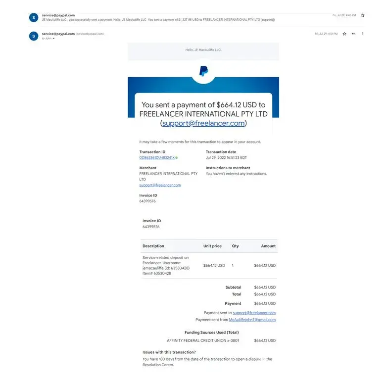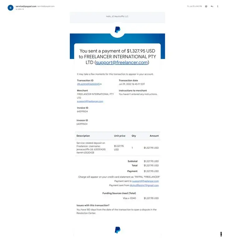 In conclusion, I have had to change my American Express card, My Bank Account Credit Card, I have had to make substantial changes to my Pay Pal account and Frelancer.com is still coming after me for more money.