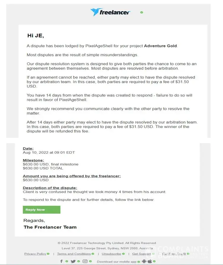 We will be filing a formal complaint against Freelancer with the government of Australia.