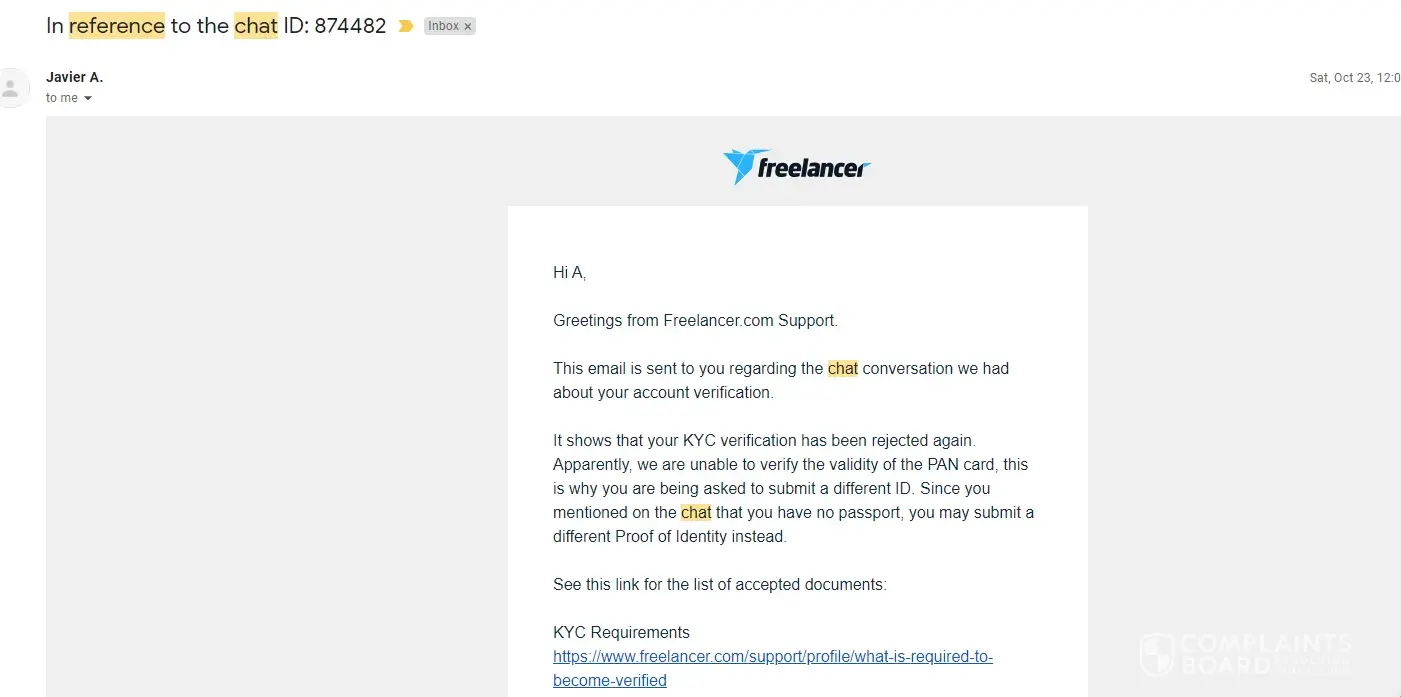 My document which is 100% genuine and in india Aadhaar card is our national id which was rejected by freelancer.com.