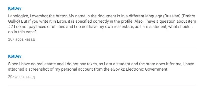 Also, I am a student, I have no personal housing and I am a citizen of another country (Kazakhstan). I do not pay taxes (because I am a student) and do not pay utilities (my parents, who own the apartment, do).