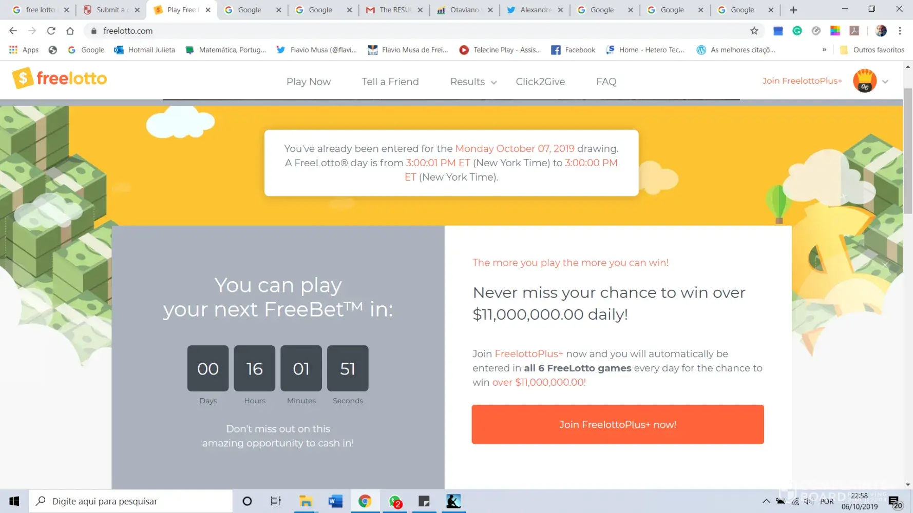 I click on "Play Now" and ... You say I've already played, that I can only play again after so many hours. I never receive the results of the supposedly placed bets.