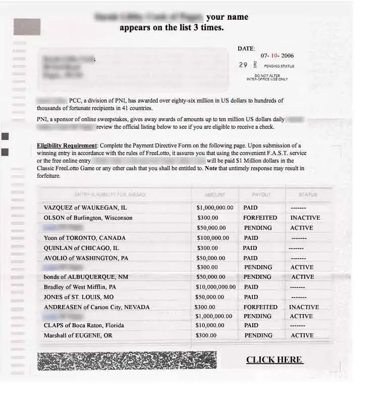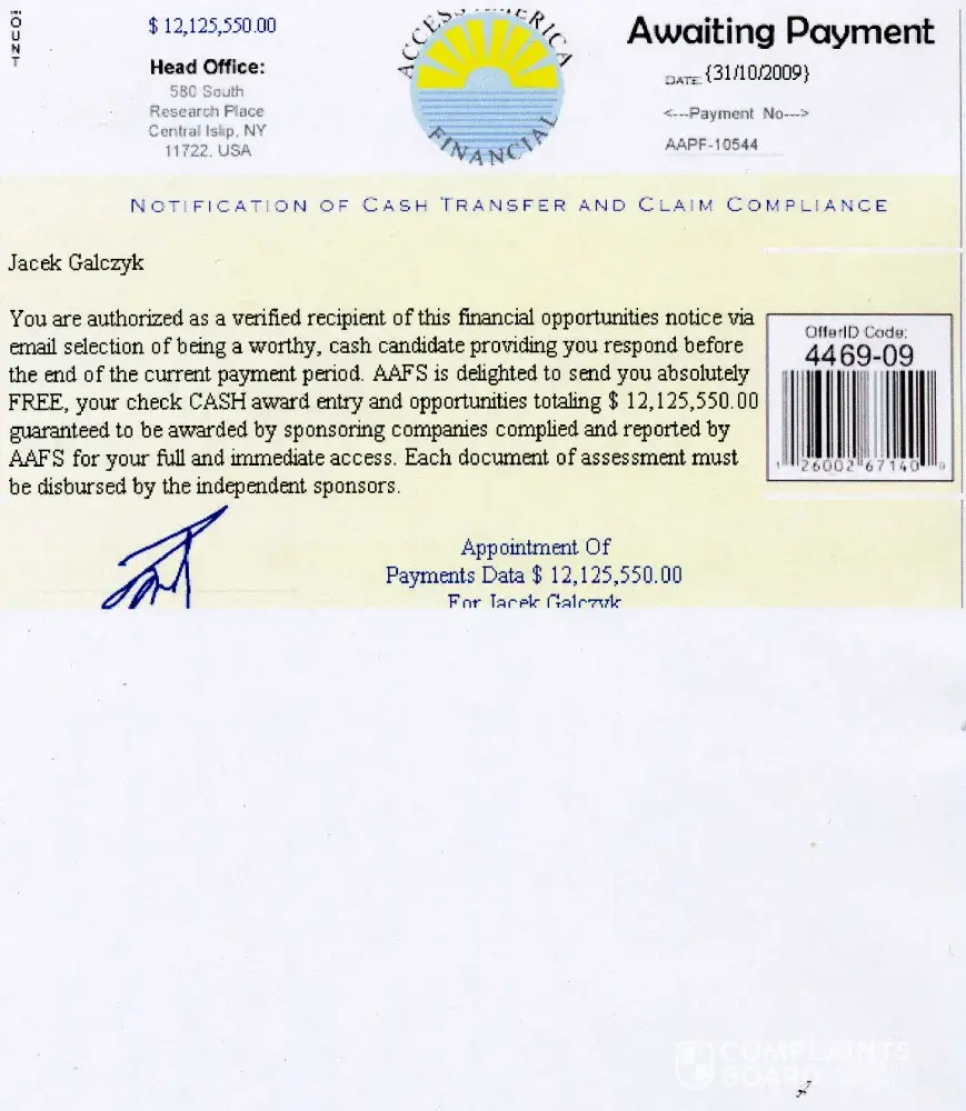 I won over $11, 000, 000 in Freelotto in July 2007. It took over 2 years waiting for my awards and finally I received e-mails from Freelotto and Access America Financial Services that they are ready to pay my awards by Bank Checks. Awaiting payment was stated on 31.10.2009. The time has passed and I still did not receive my Bank Checks.