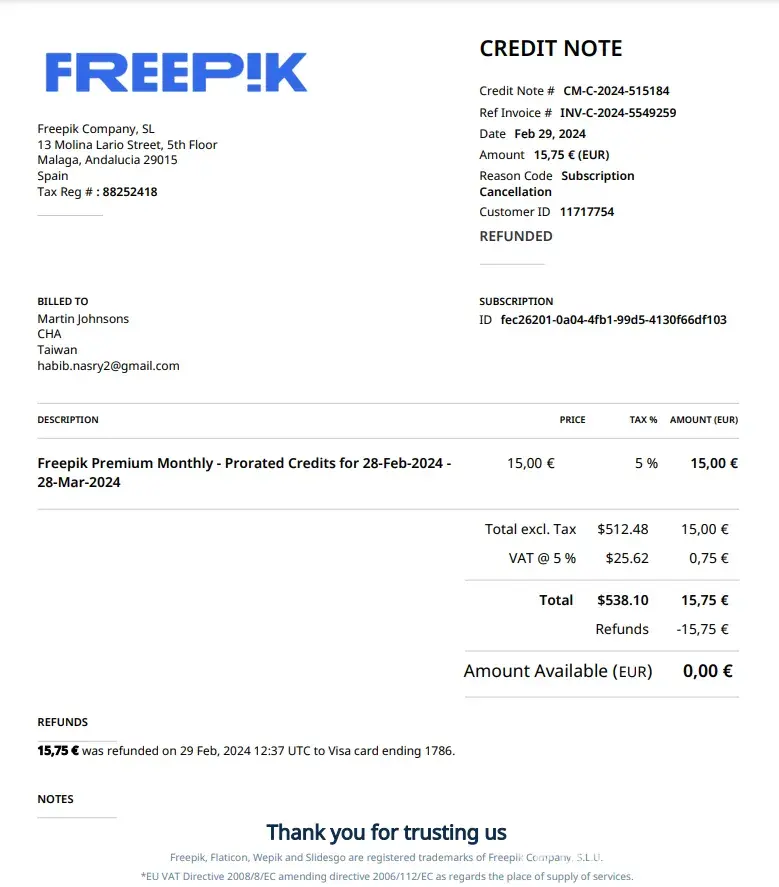 Overall, I was scammed by FreePik, and it was a really unpleasant experience. They definitely should have been a lot more helpful and done something to fix the problem. I wouldn't recommend using their services at all, and wish I could have my money back. So, I warn everyone to be careful and cautious when dealing with this platform.