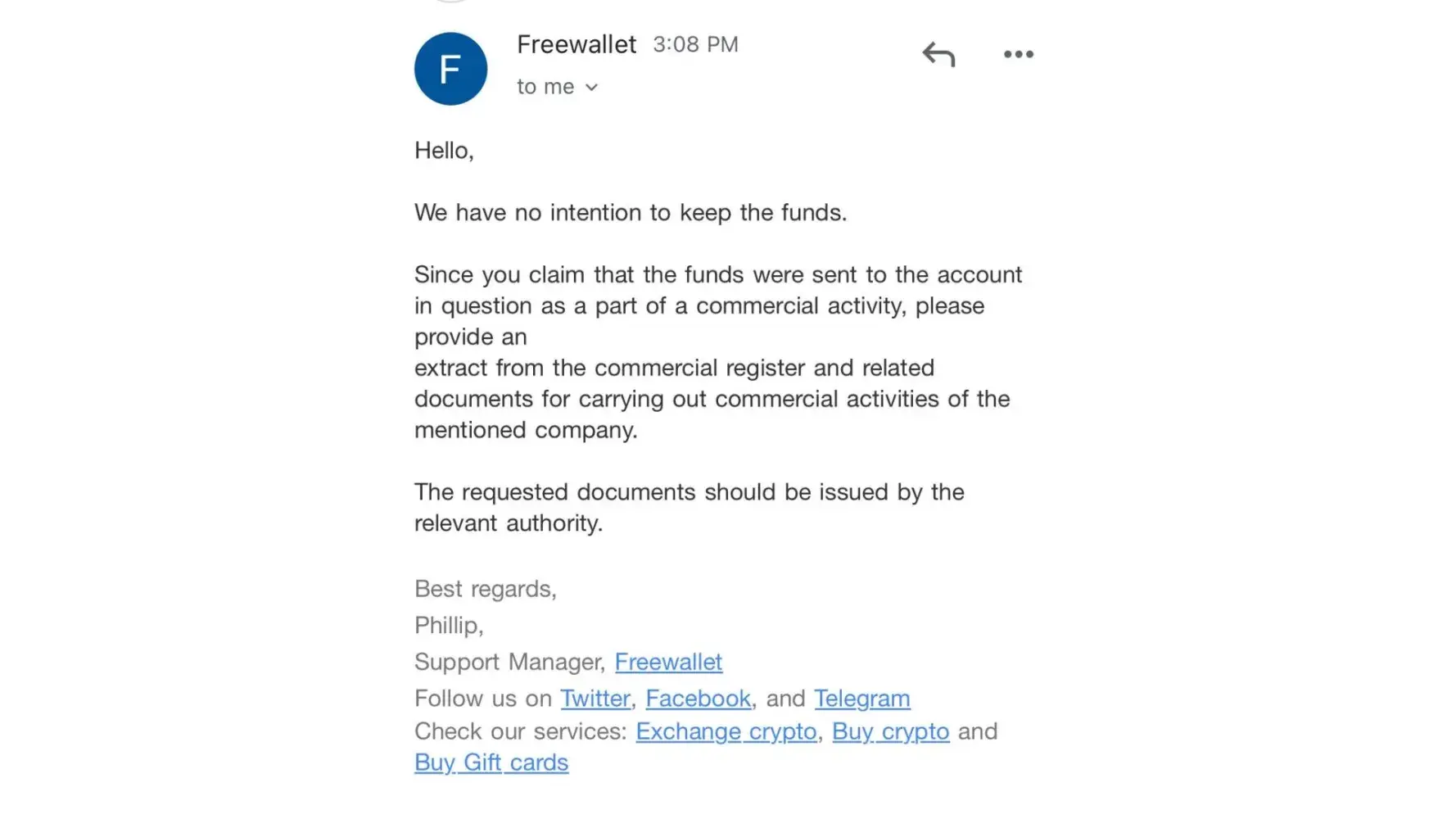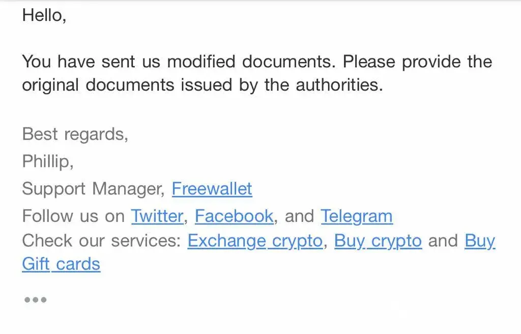 Freewallet response