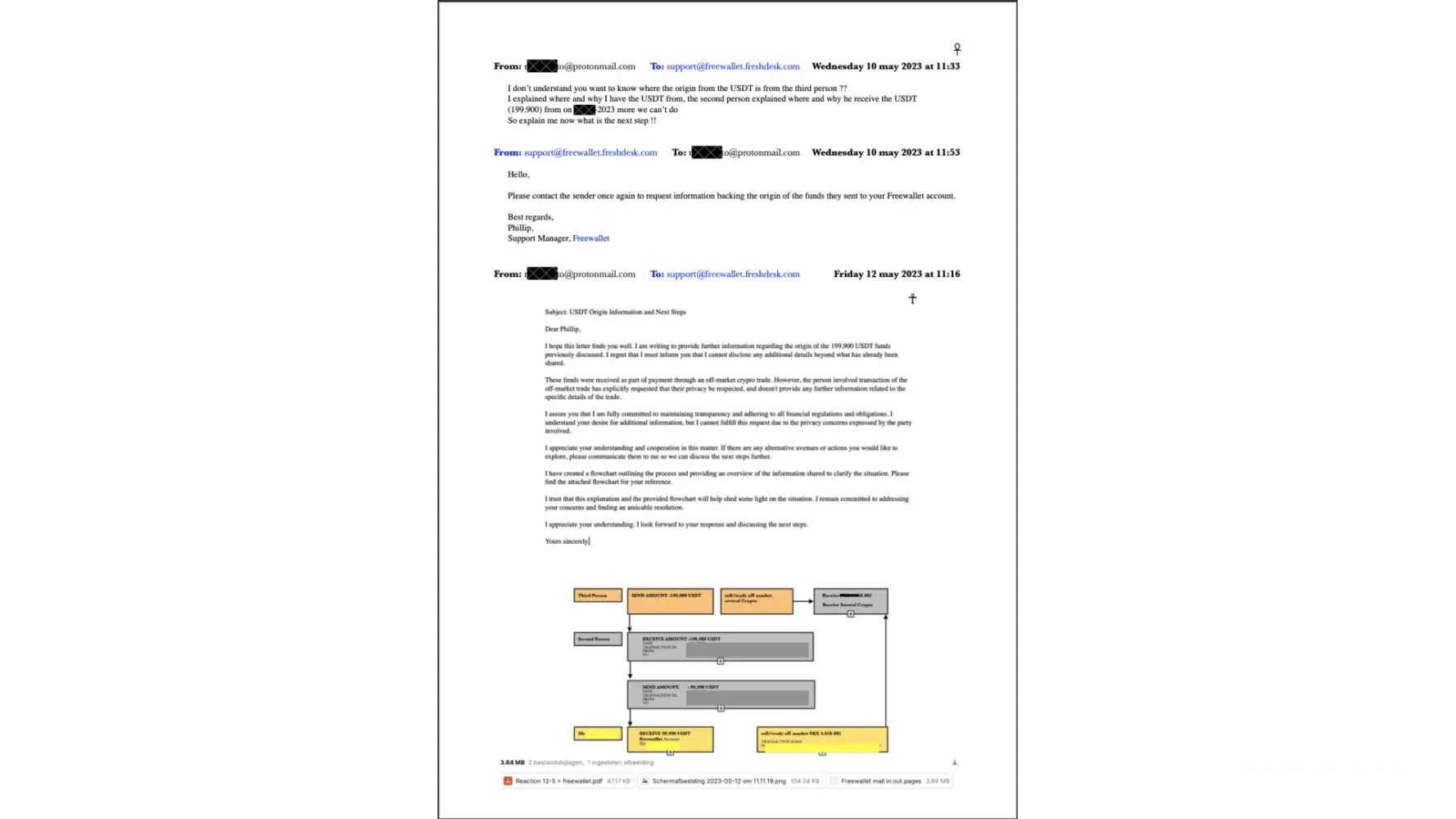 On 2023 Feb 21 I received a USDT payment on my wallet and soon after that my account temporarily suspend withdrawals. Then they asked to verify my identity as per their order I have send my passport copy, video of some transactions on my app etc. Then they asked to give the screenshot/ video of incoming transfer from the sender APP. That also I have given. Then they asked to give video of transaction where my sender received the funds. I contact my sender, they updated that since we are giving same service they cannot give their client details. Then freewallet support asked my company registration details, I have given my PVT LTD company Incorporation Certificate, MOA and AOA. Then they started saying its not authority issued certificates. I don't know how they check a company Incorporation certificate is no genuine. They simply reply to all my mails saying its not authorized certificates. But I am sure that I am giving the original certificates. With out proper explanation, their support Mr. Philip keep replying send originals. I thought since they are out side of India, they may not able to verify that. So I told them I have Hong Kong entity with same name they can verify that and send the Incorporation Certificate and Business Registration Certificate. Again Mr. Philip replied to send the original certificate with out any proper explanation. I have registered HK company using Sleek.com I have given their portal logins to them so that they can download the certificates from there.