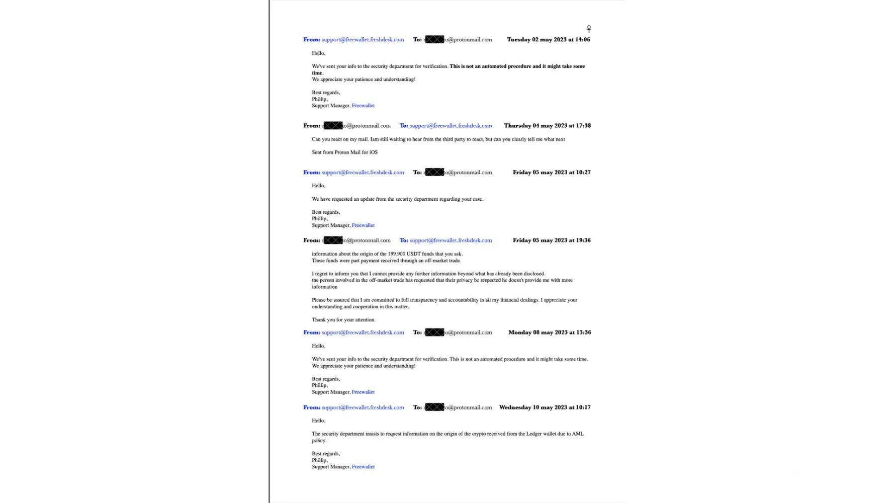 Freewallet support answers only two out of every 10 emails by its own choice
