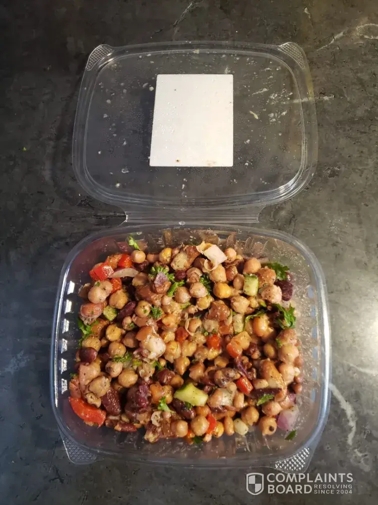 Firstly, I purchased [ $7.99] a container of Salad Beans on February 18, 2024, with an expiry date of February 24, 2024, from your restaurant Tahini' Kitchen . To my dismay, upon opening the container in Ottawa, I immediately noticed a stale odor emanating from the beans. It is unacceptable for a product to be sold well within its expiry date and yet be of such poor quality. If I had consumed it, I could have food poising. Furthermore this experience has left me deeply disappointed and questioning the standards upheld by your company with regards to training of kitchen staff.